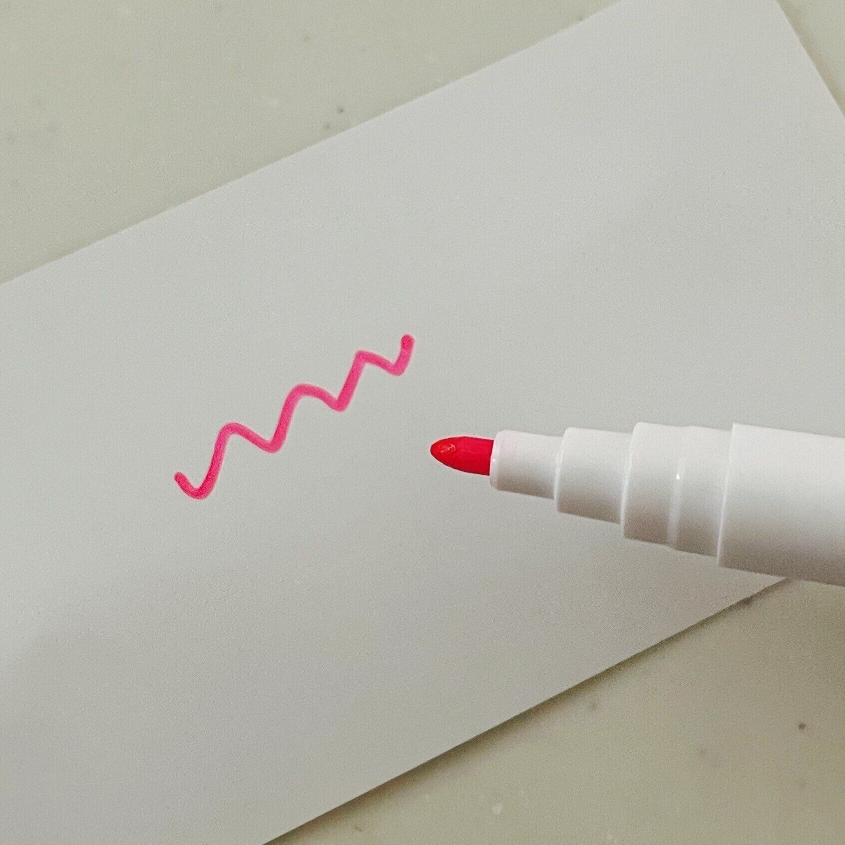 付属のマーカーはピンク色。細字タイプで見た目は至って普通のカラーペンです。