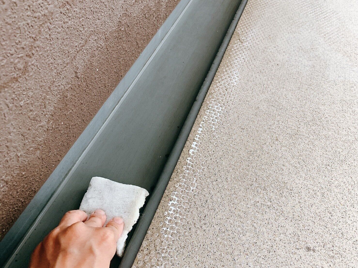 バルコニーの側溝とは、排水のために端に設けられている溝のことです。排水口へとつながっている箇所です。バルコニー内に雨水と共に汚れも入り込んできます。その汚れが側溝に溜まり、黒く汚れてきます。