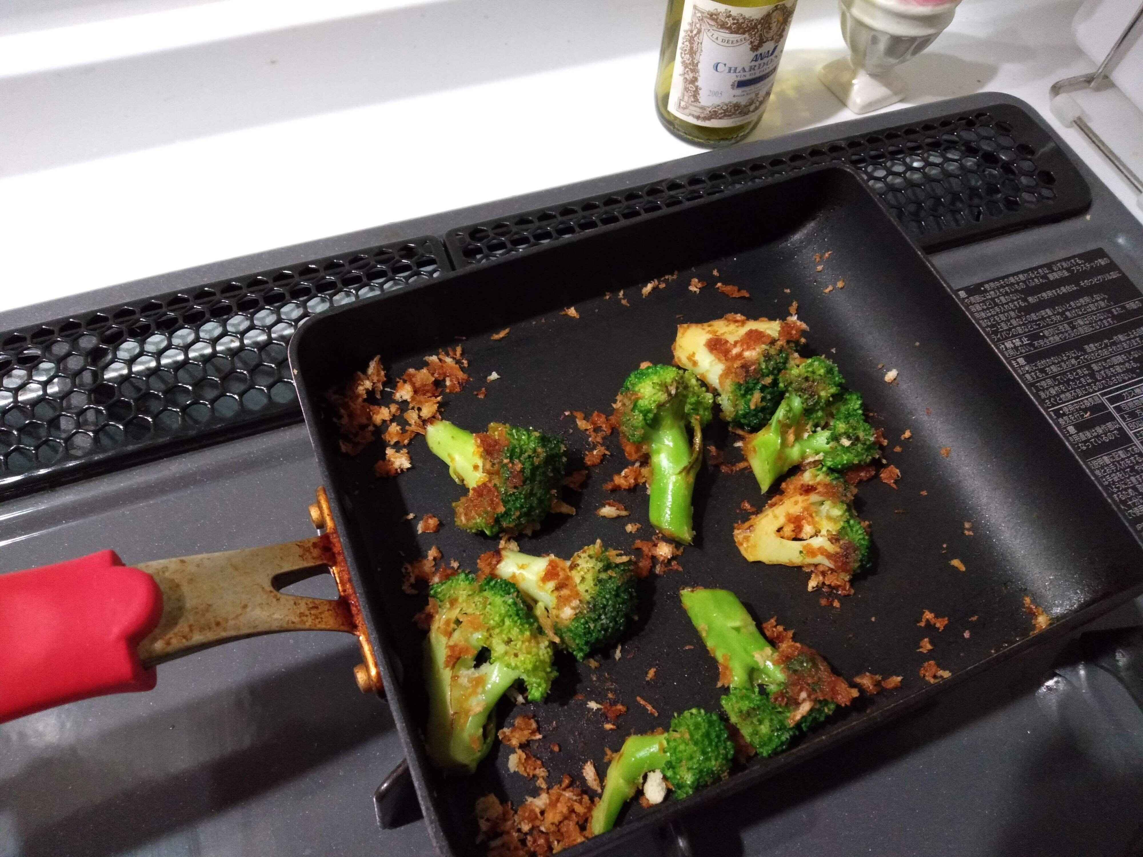 ブロッコリーを焼いて、パン粉と醤油をかけるだけ!
