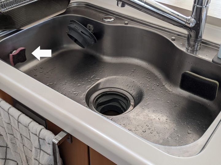 わが家のキッチンシンクには備えつけのスポンジラックがあり、入居時からなんの疑いもなく使い続けていました。