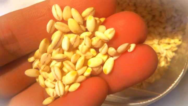 現在筆者は、「ビタバァレー」という種類を使っています。自宅にあったものは、見た目は米粒麦に近く、食物繊維の含有量は七分つき大麦に近い状態のものでした。(商品によって特徴が異なる可能性あり)