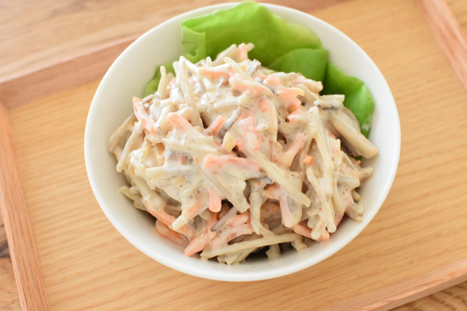 ドレッシングが惜しみなくかかっているので、サラダというよりはごぼう風味のドレッシングとしてのアレンジがおすすめです。