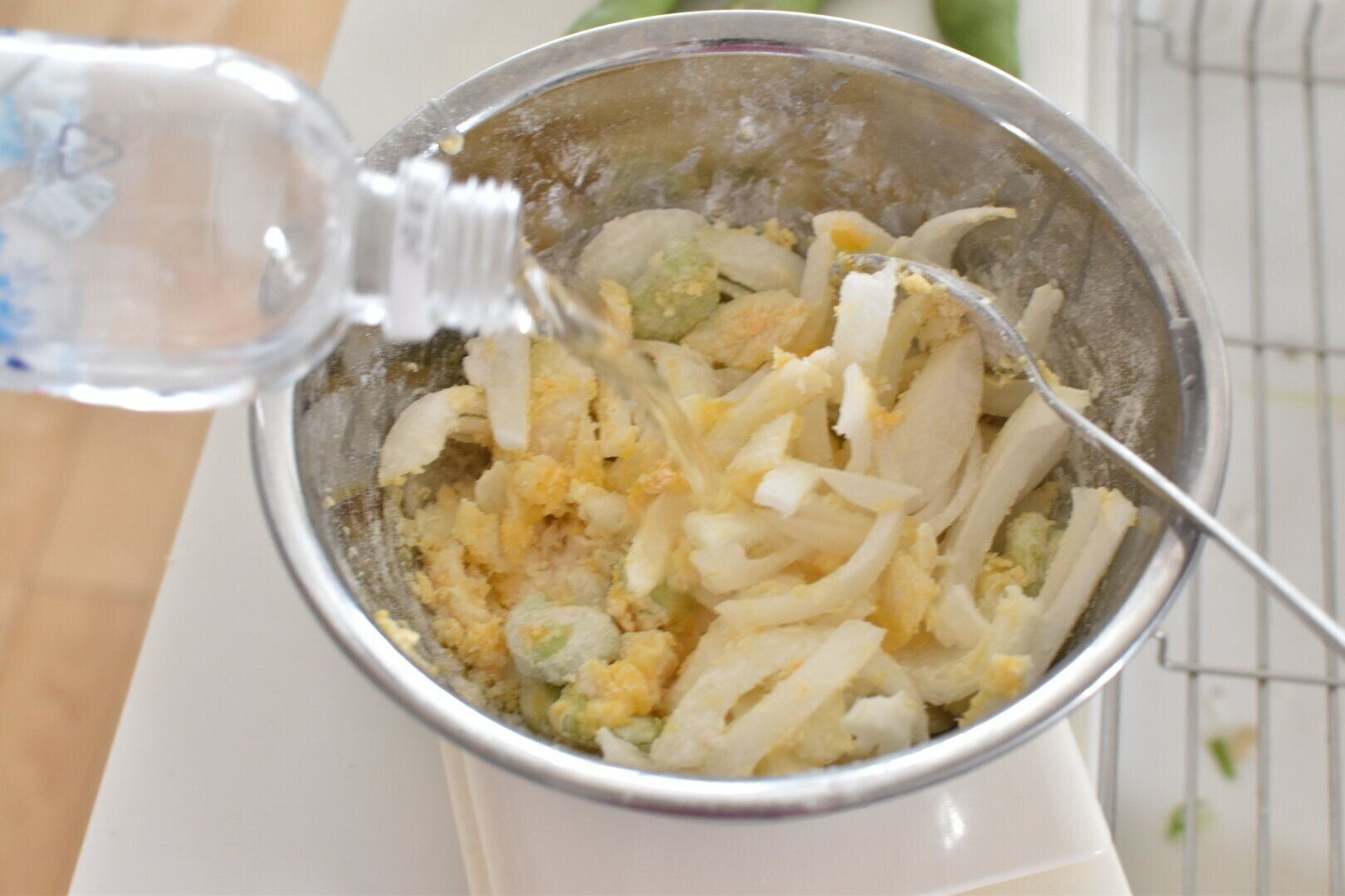 天ぷらがべちゃっとなるのは、衣の中に水分が多く含まれていることが原因のひとつに。