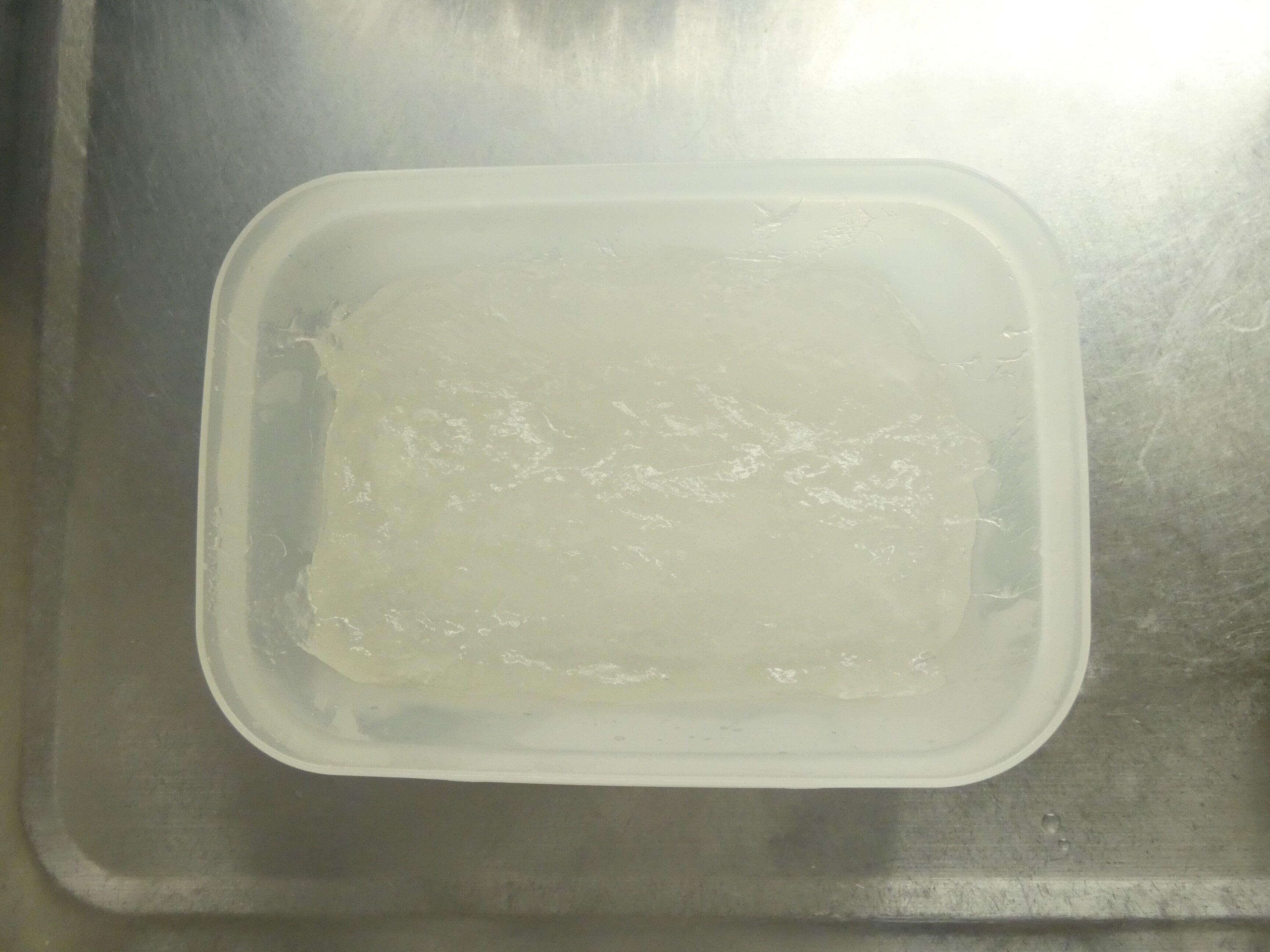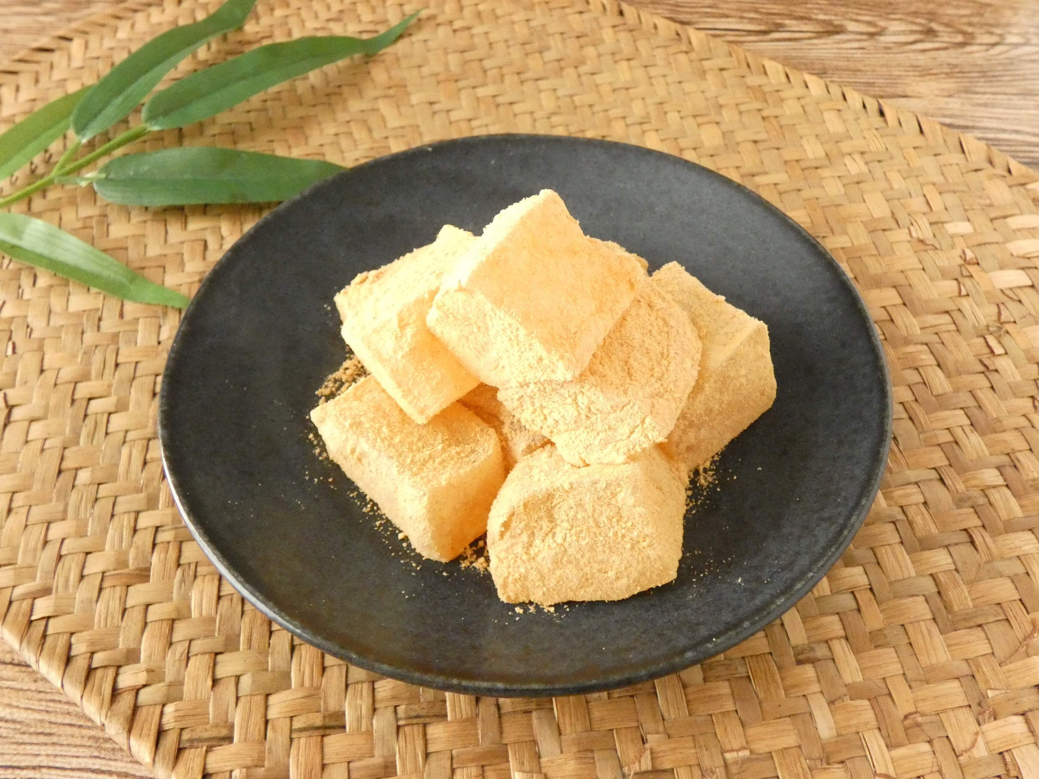 4.容器に移してあら熱をとり冷蔵庫へ入れます。冷やしたら包丁で食べやすい大きさに切り完成。お好みできな粉や黒みつをかけて下さい。