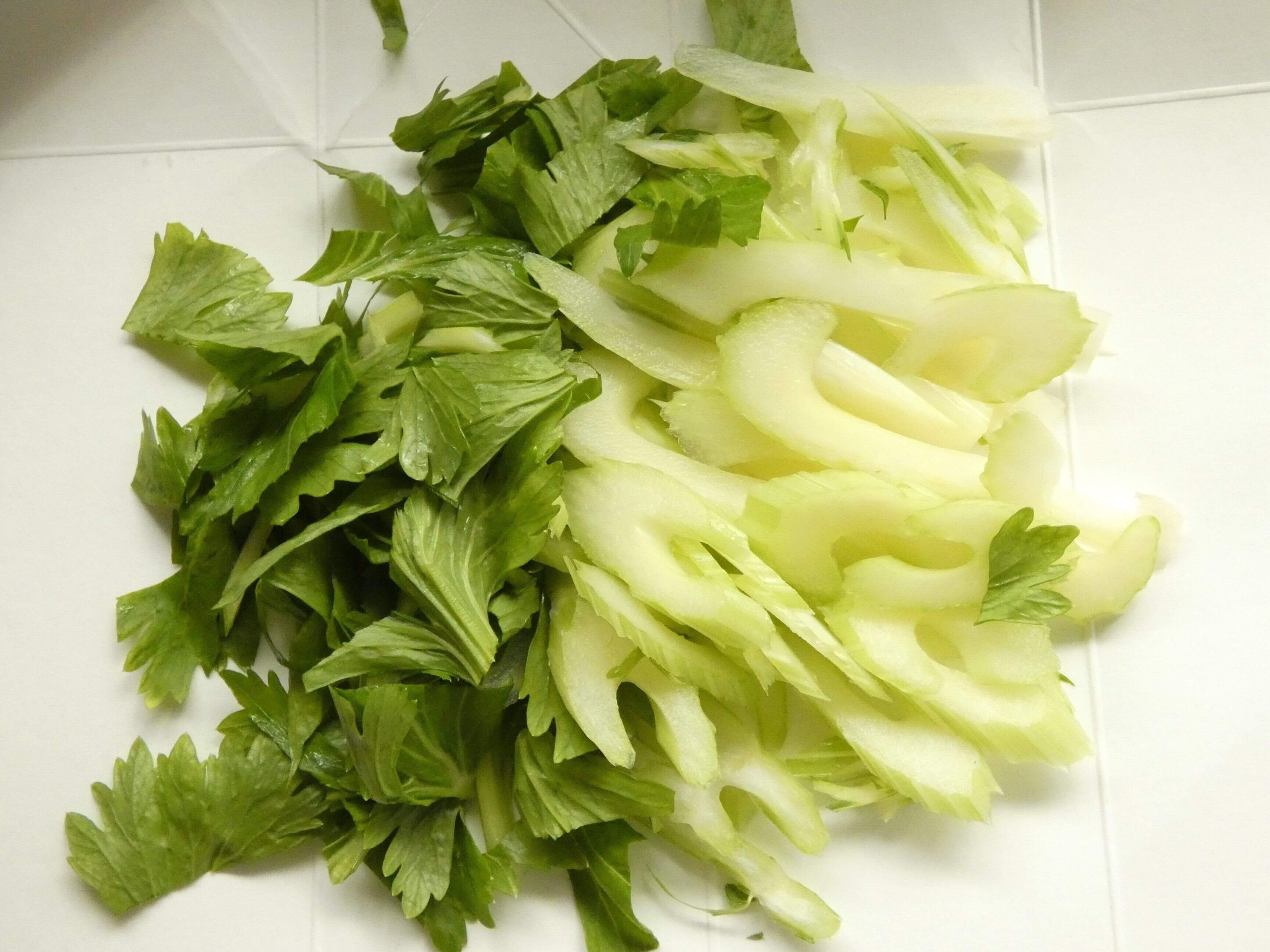 1.セロリは斜めに薄切りにし、葉もざく切りにします。