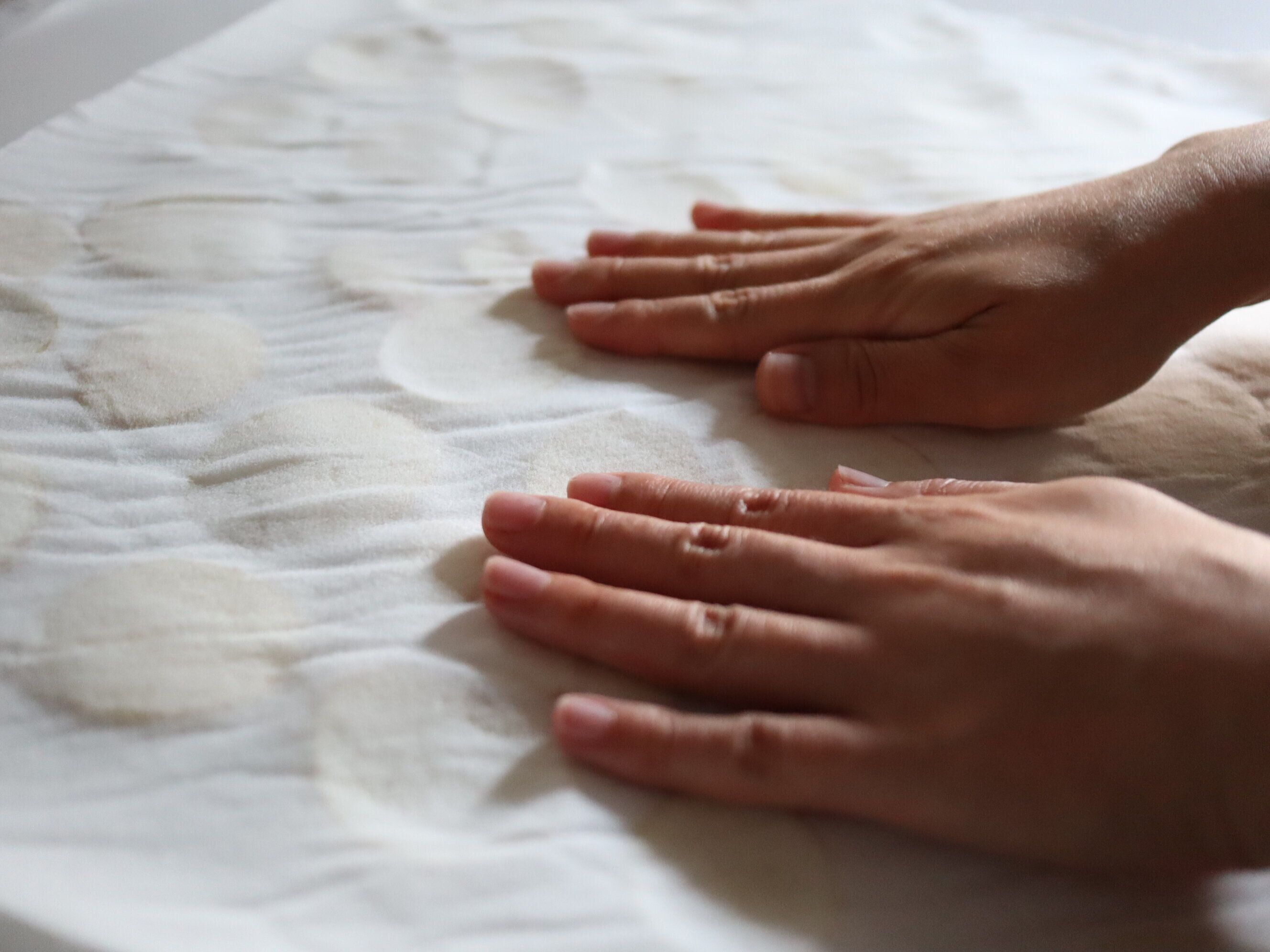 (3) キッチンペーパーでしっかり水気をとる。