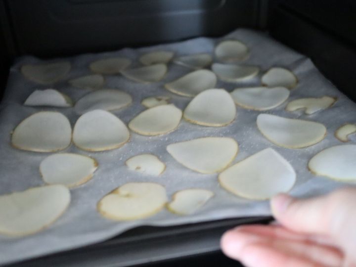 通常油で揚げてパリッとさせるのがポテトチップスですが、このレシピではレンジで水分を飛ばすので油は使いません。また、塩も片面にほんのりついている程度なので、塩分も気にならず、子どものおやつにも心配なく食べさせることができます。