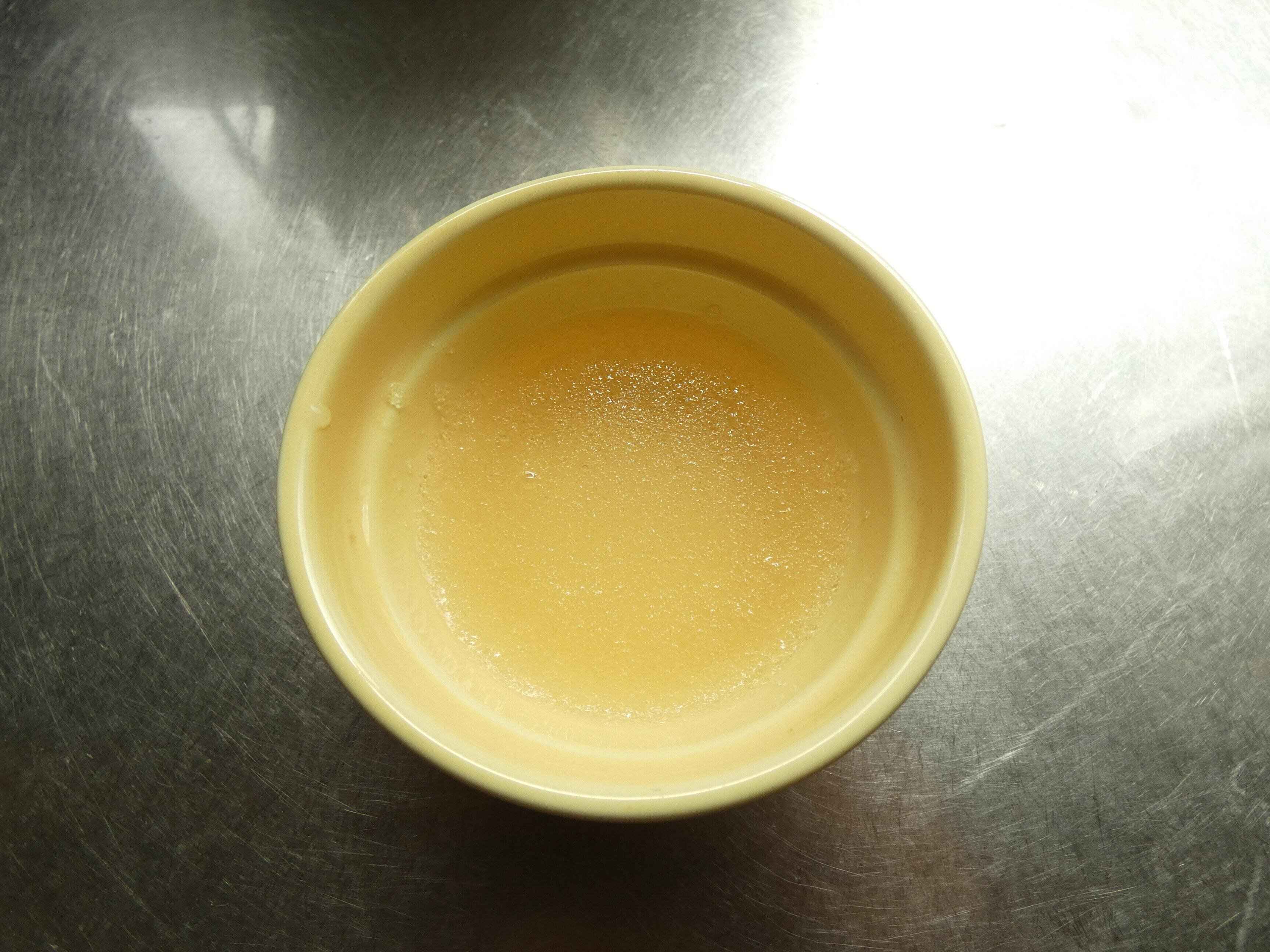 4.ゼラチンを電子レンジ600Wで10~20秒加熱します。3に混ぜ合わせて器に入れ、冷蔵庫で冷やし固めます。