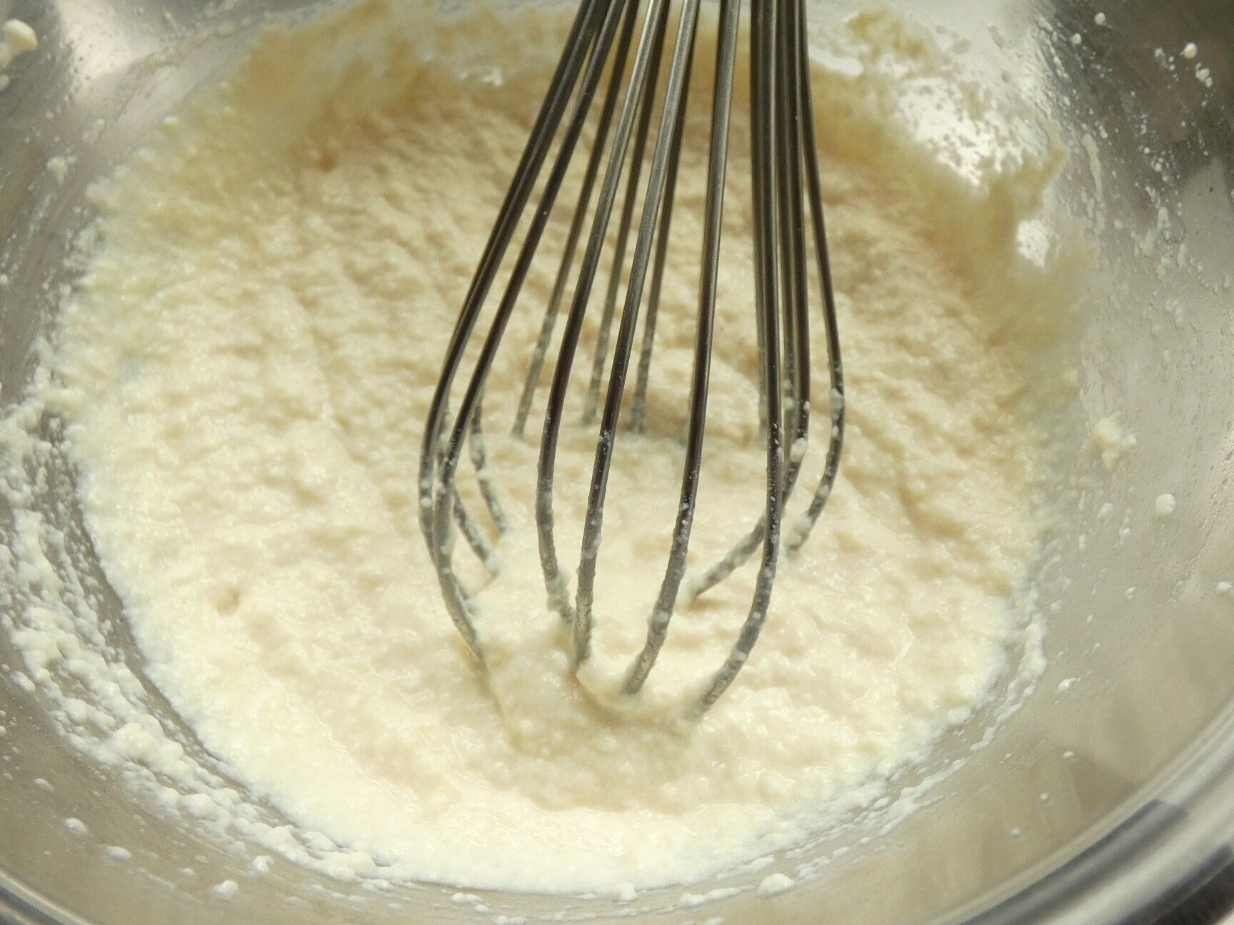 3.豆腐をボウルに入れて泡立て器でなめらかになるまでよく混ぜ、牛乳ときな粉を合わせます。