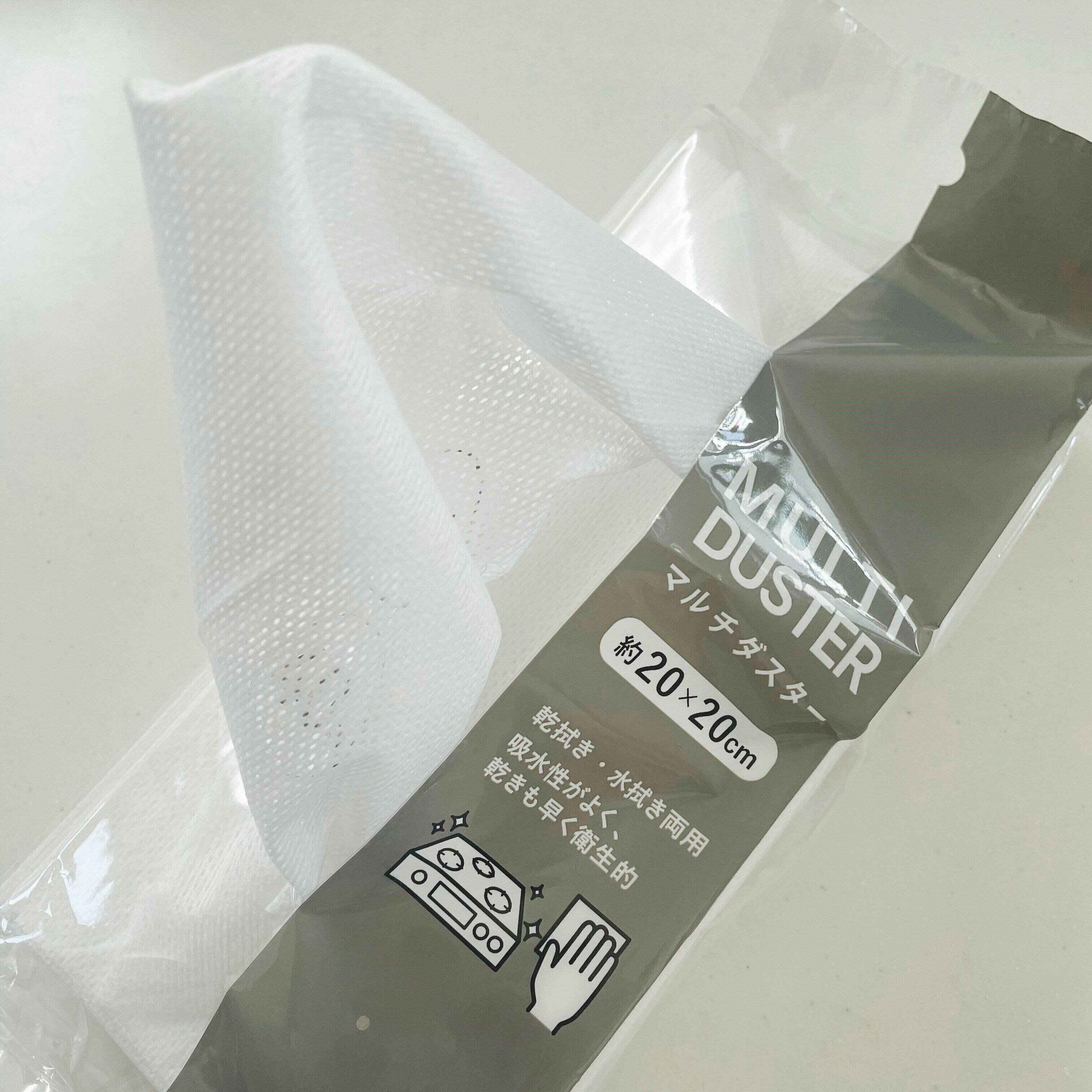 1枚20cm×20cm四方で、手が透けるほど薄い繊維で、小さな穴が無数にあるので通気性も良く濡らして使っても乾きが早いのが特徴です。
