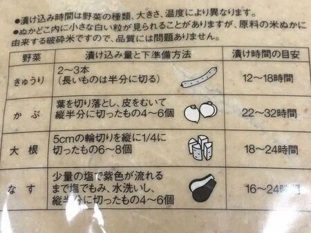 漬ける時間の目安は袋に記載されているので、初めてでも時間の目安がわかりやすいです。