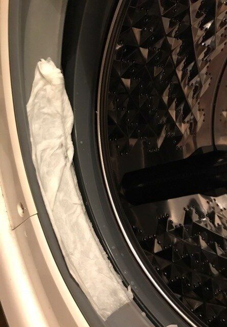 ブロガーの若松美穂さんは、何をしても取れなかったドラム式洗濯機のゴム部分のカビ撃退法を見つけました! 使うのはキッチンペーパーと台所用漂白剤です。洗面器の中でキッチンペーパーにうっすら漂白剤をかけ、カビ発生箇所に張り付けるだけ。仕上げに濡らした布で丁寧に拭きあげると、スッキリきれいになりました。