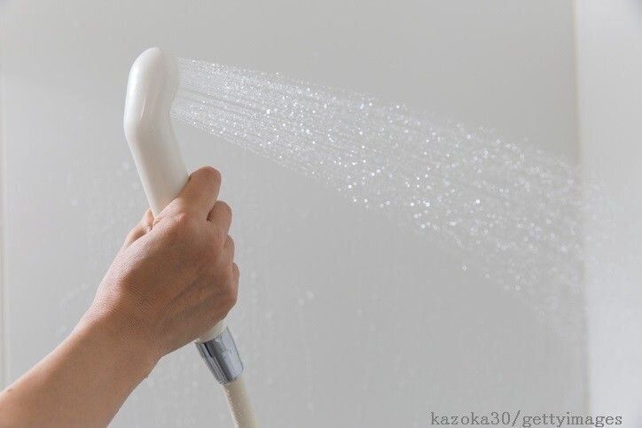 カビが生えないように普段から心がけておくべきことは、風呂を上がる直前に、浴槽、壁面にまずはお湯のシャワー。カビの餌となる石けんカスを流します。さらに冷水をかけておくと、温度が下がり、カビが生えにくい環境になります。とくにカビができやすい腰よりも下の低いゾーンを念入りに。またお風呂を出る前に、足で床にたまった水をサッと払って流しておくだけでも湿気予防になります。