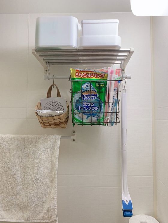 こちらには専用のブラシスタンドがありますが、床には置きたくないので吊るして収納しています。
