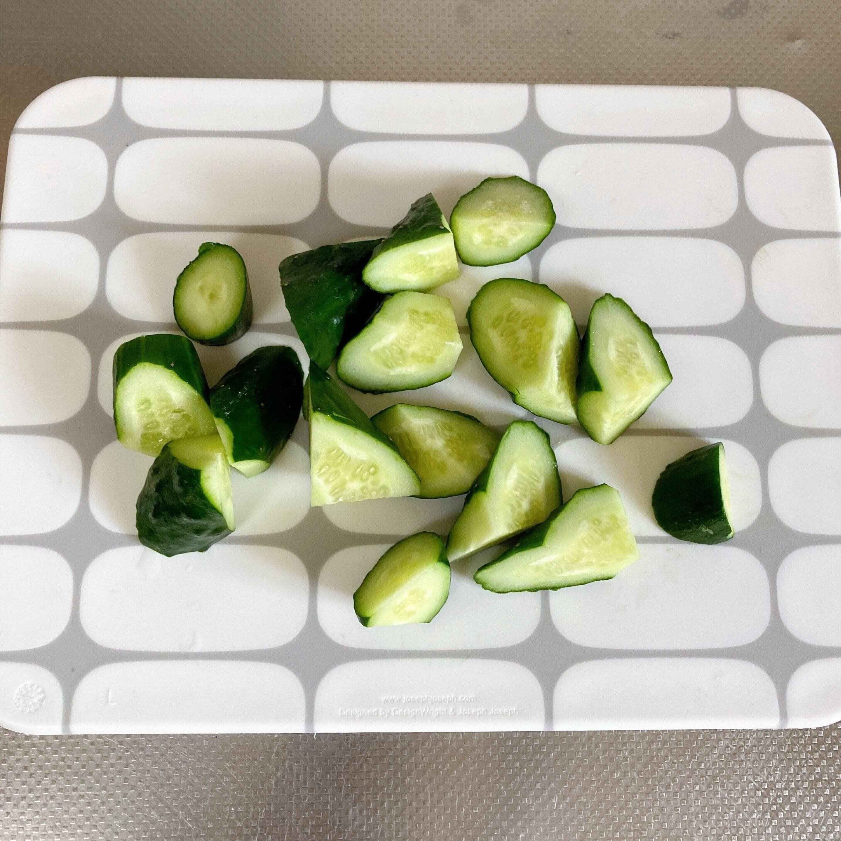 きゅうりの端を切り落とし、好きな大きさに切る。