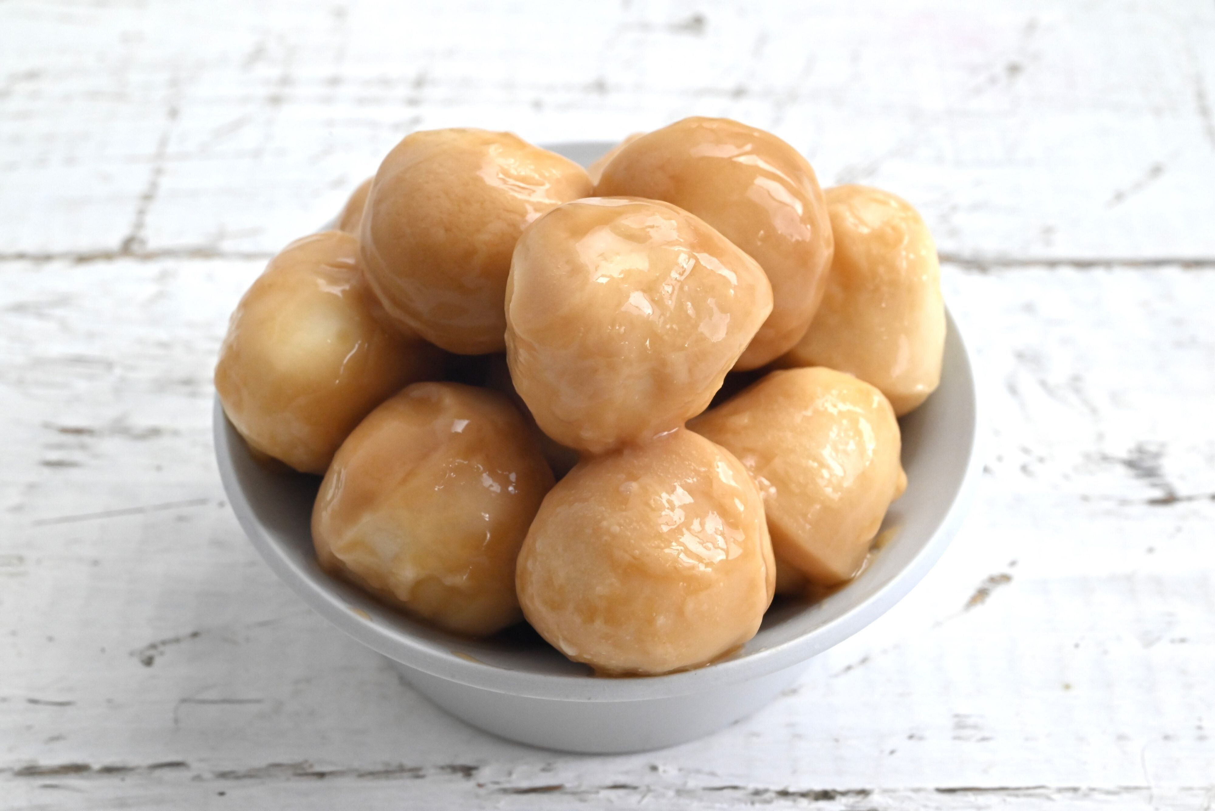袋を開けると、コロコロとした2㎝くらいの球状のモッツァレラチーズがぎっしり。一粒当たり5gほどと小さいので、解凍しやすく切る手間が省け、少しずつ気軽に食べやすいというメリットがありますよ。