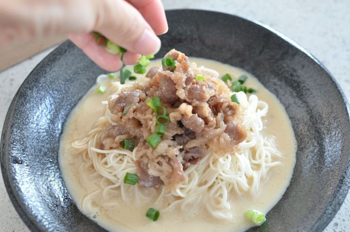 【牛肉しぐれ煮豆乳そうめん】作り方