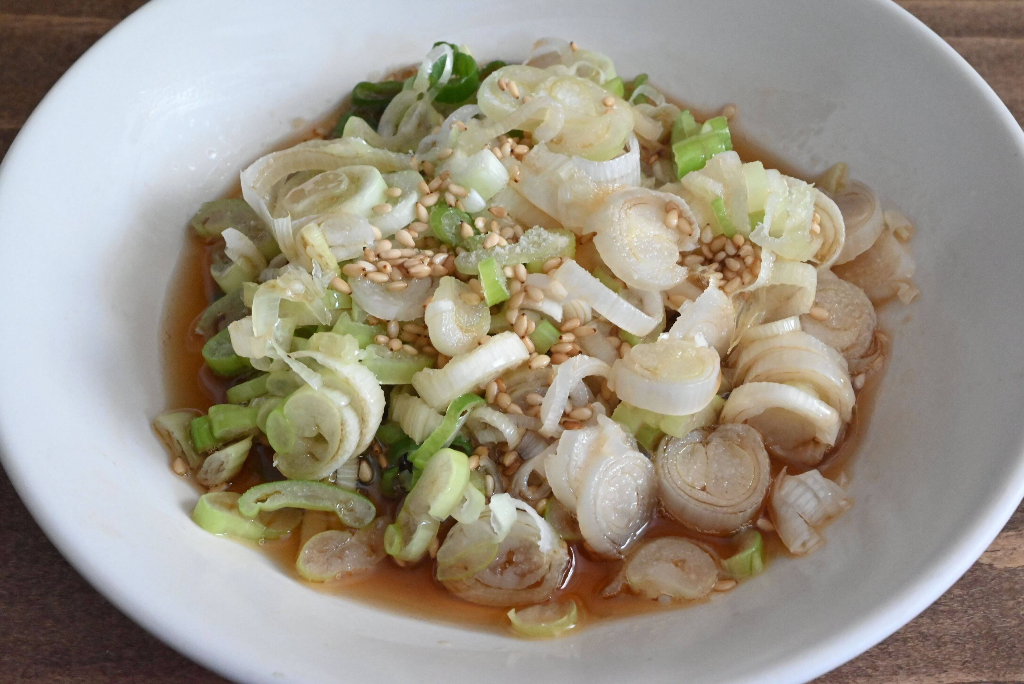 熱々に熱したごま油を長ねぎにかけるレシピです。