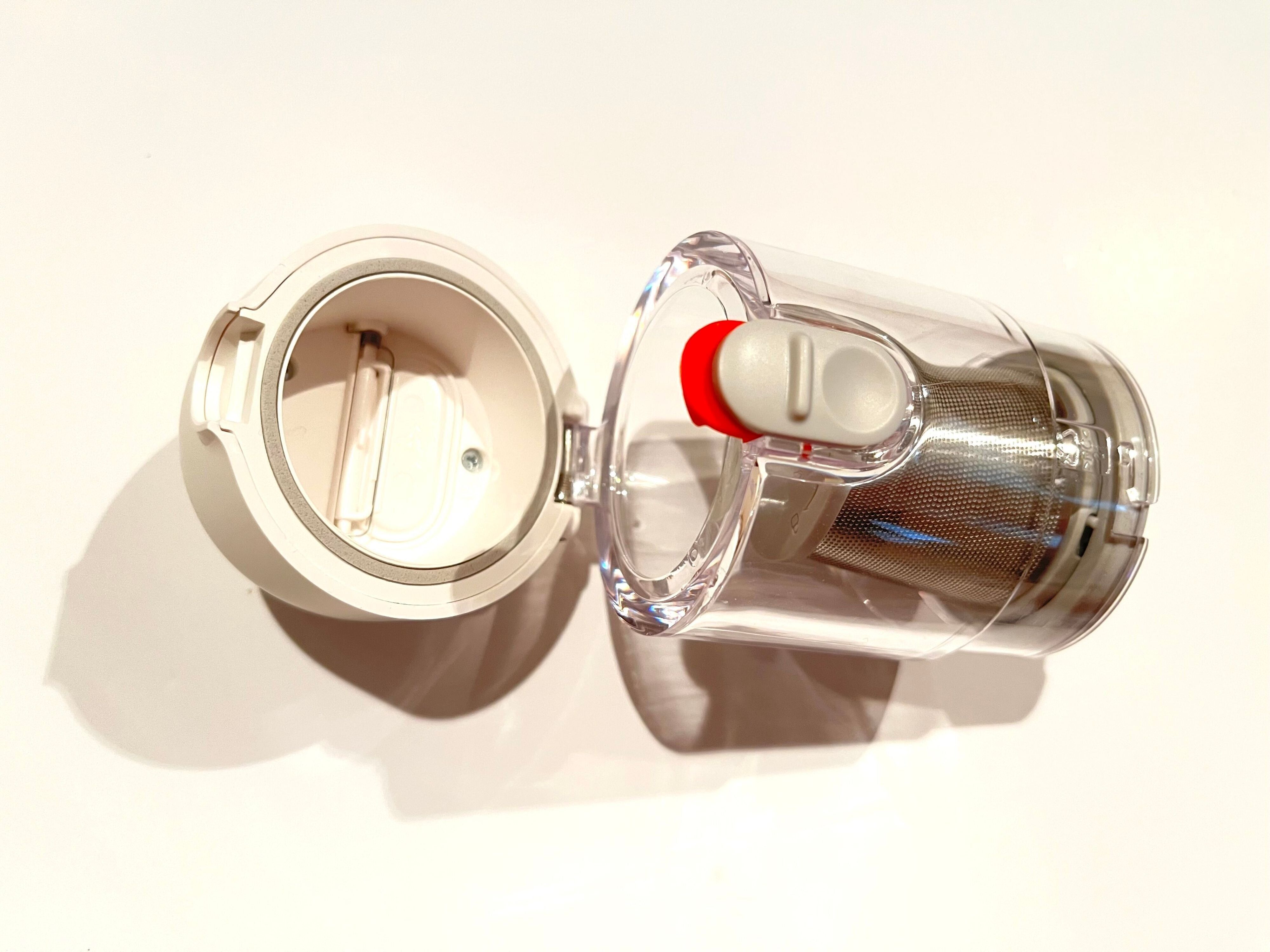 本体上部のダストカップは、ロックを外すとこのように開きます。
