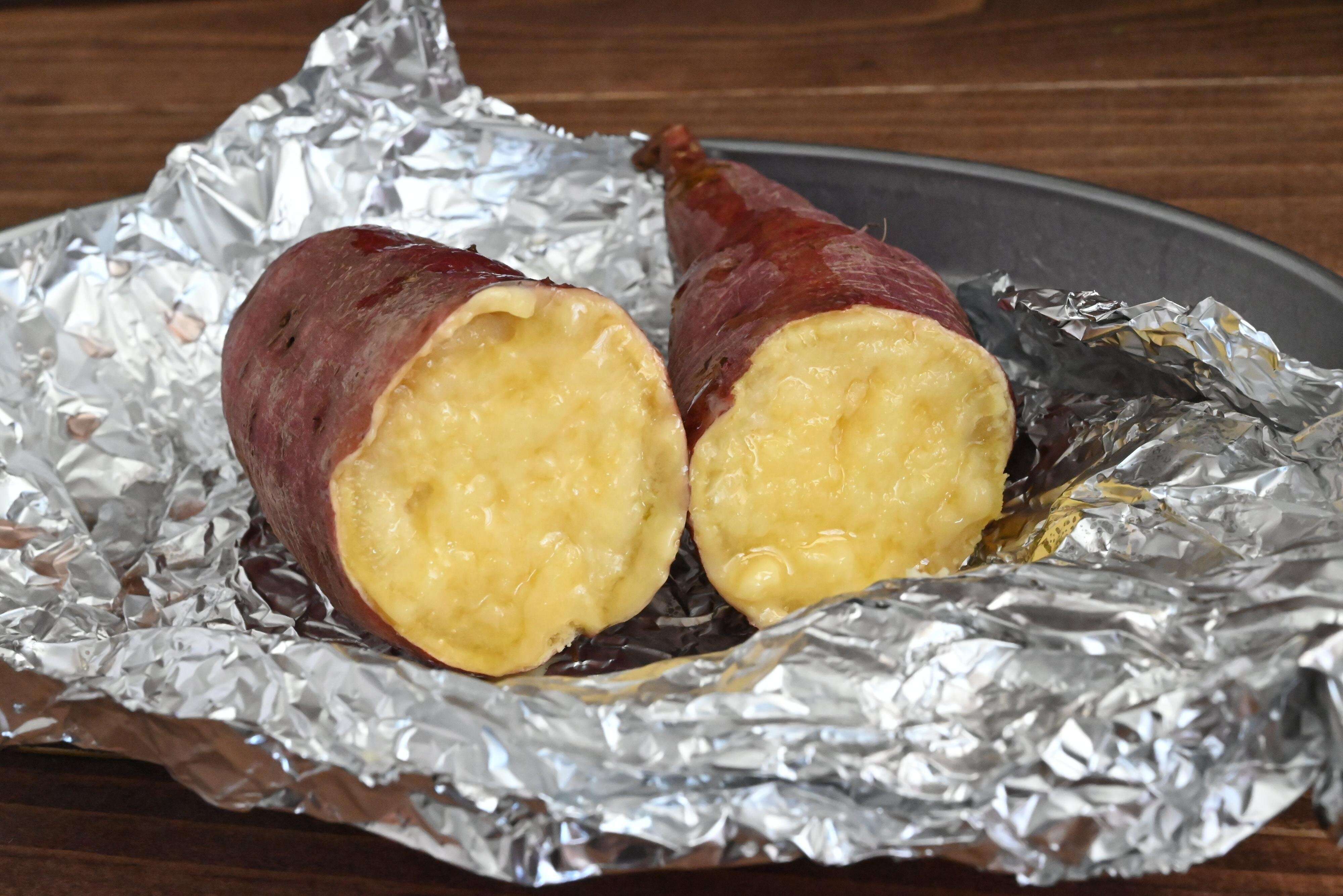 じっくり加熱するだけで、普通のさつまいもが甘味たっぷりの焼き芋になりますよ。