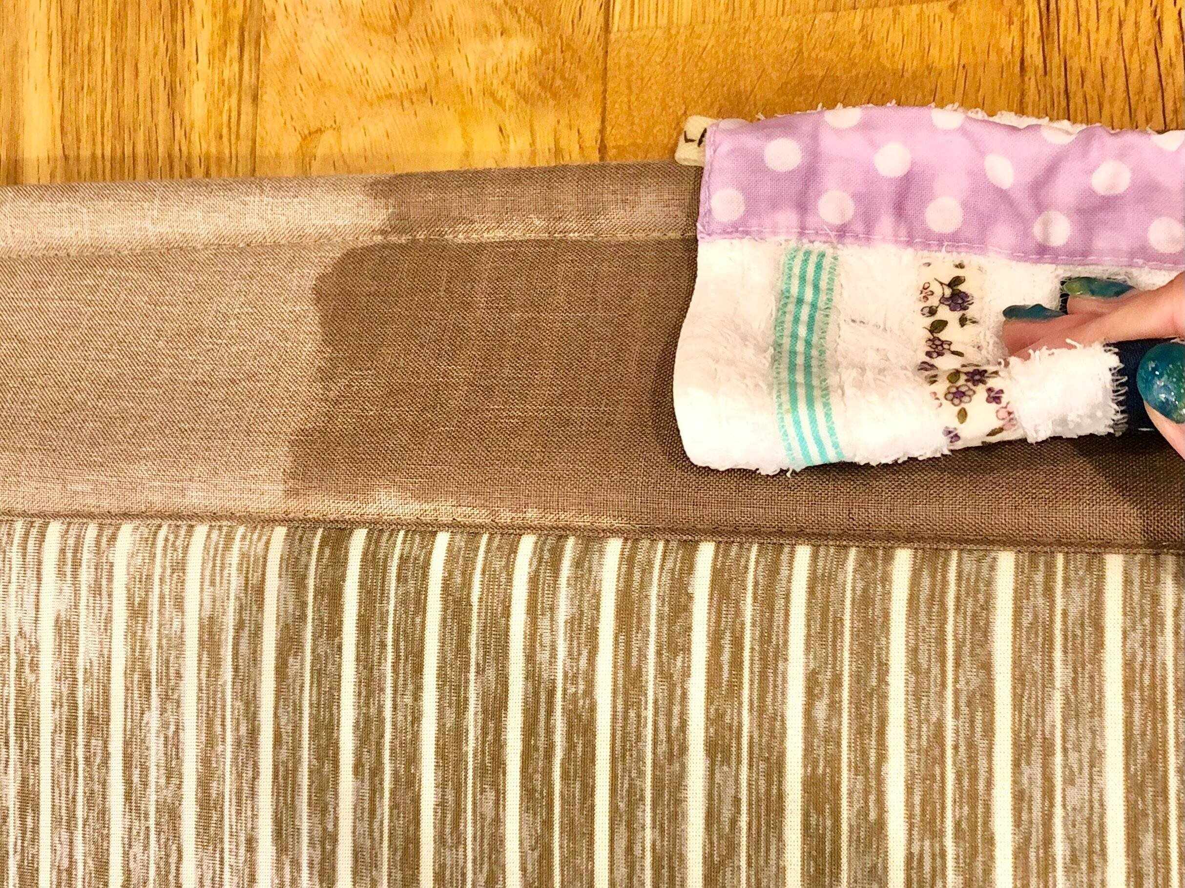 1~2分置いたら、タオルでギュッギュッと押さえるように拭き取ります。ゴシゴシ擦るとシミが拡がってしまうので、「押さえるように」がポイントです。
