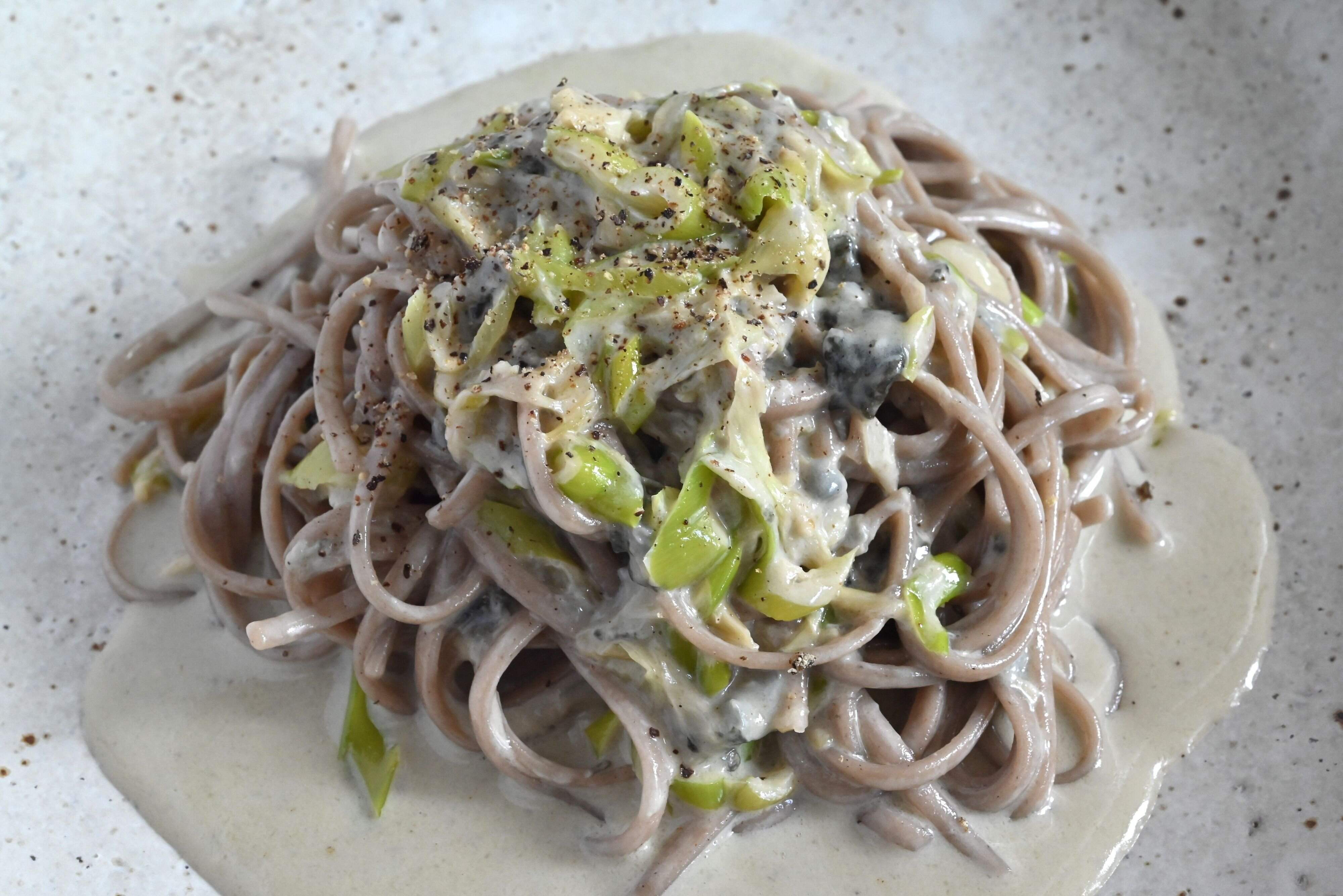 蕎麦にブルーチーズを合わせるレシピです。
