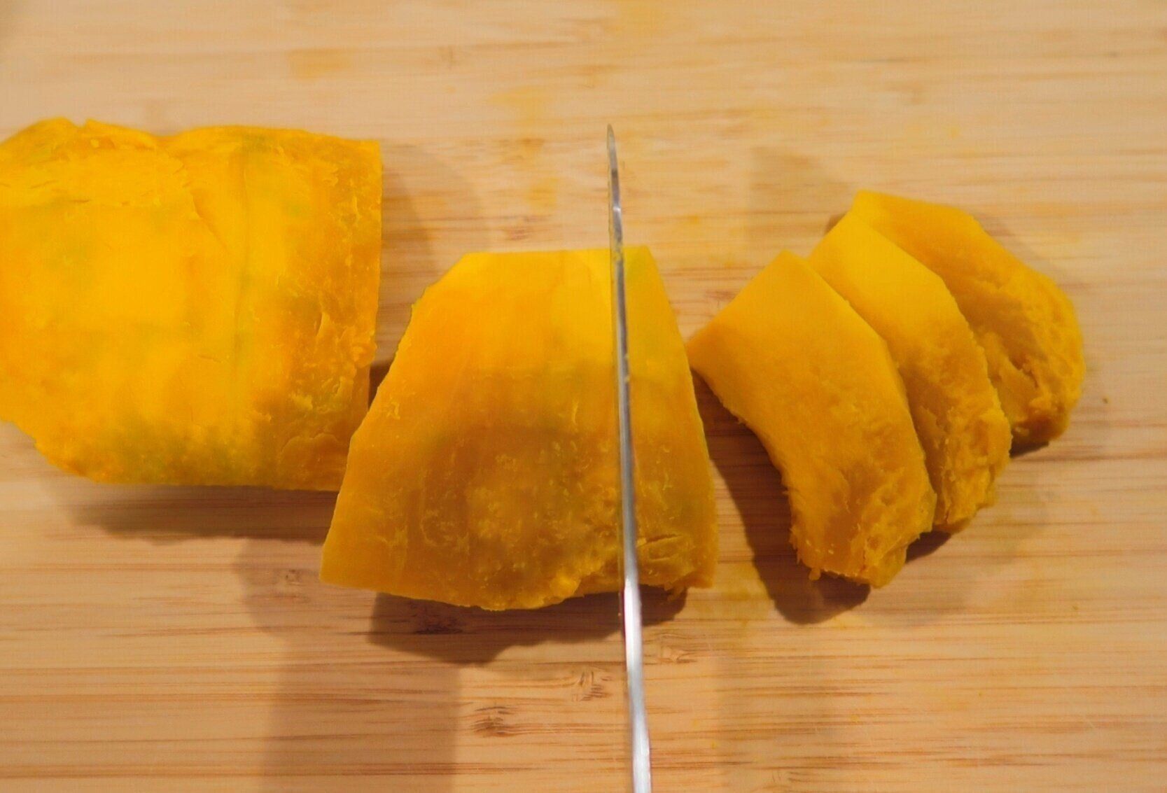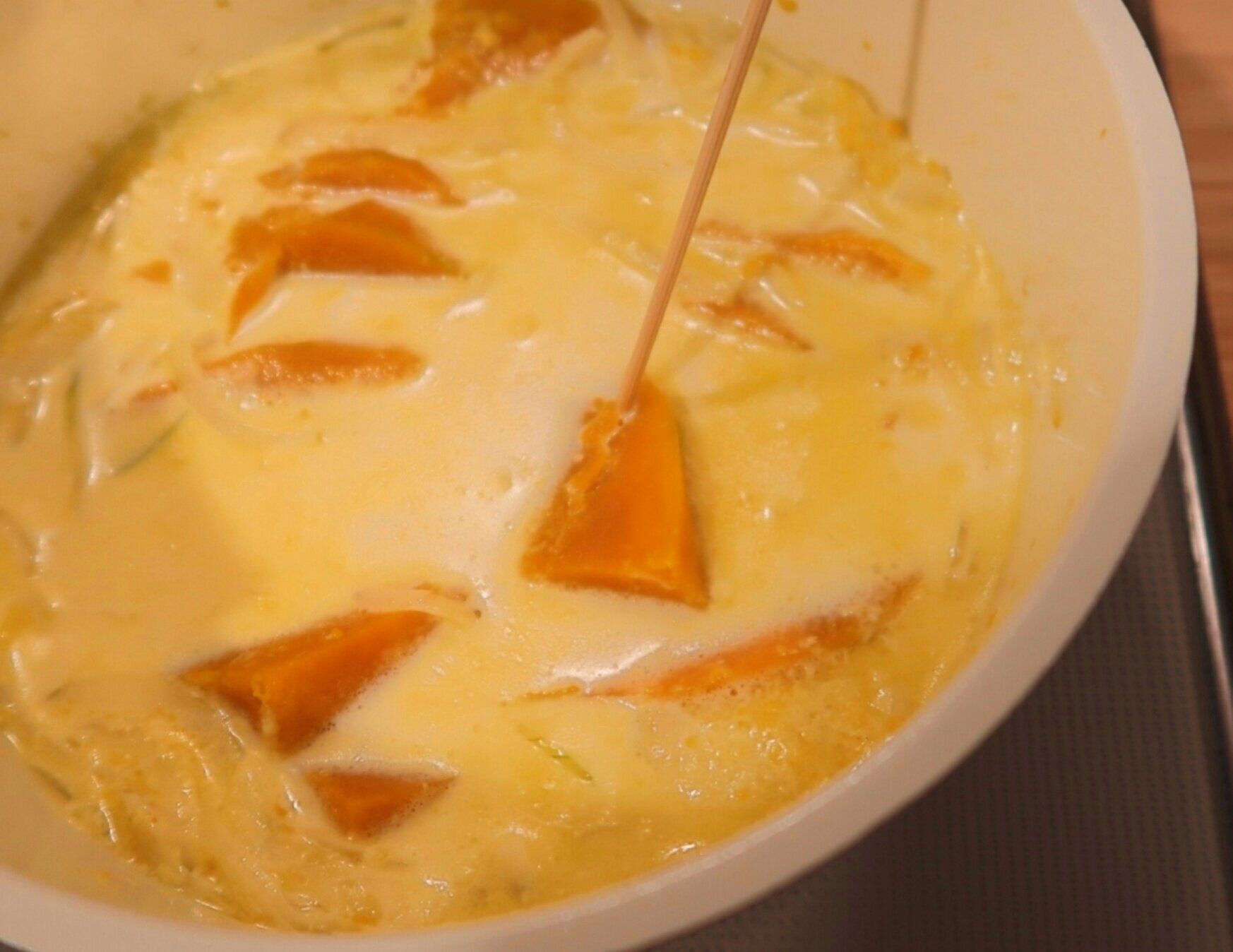 あらかじめかぼちゃを加熱しておくことで、包丁で切りやすくなり、煮込む時間も短縮することができます!