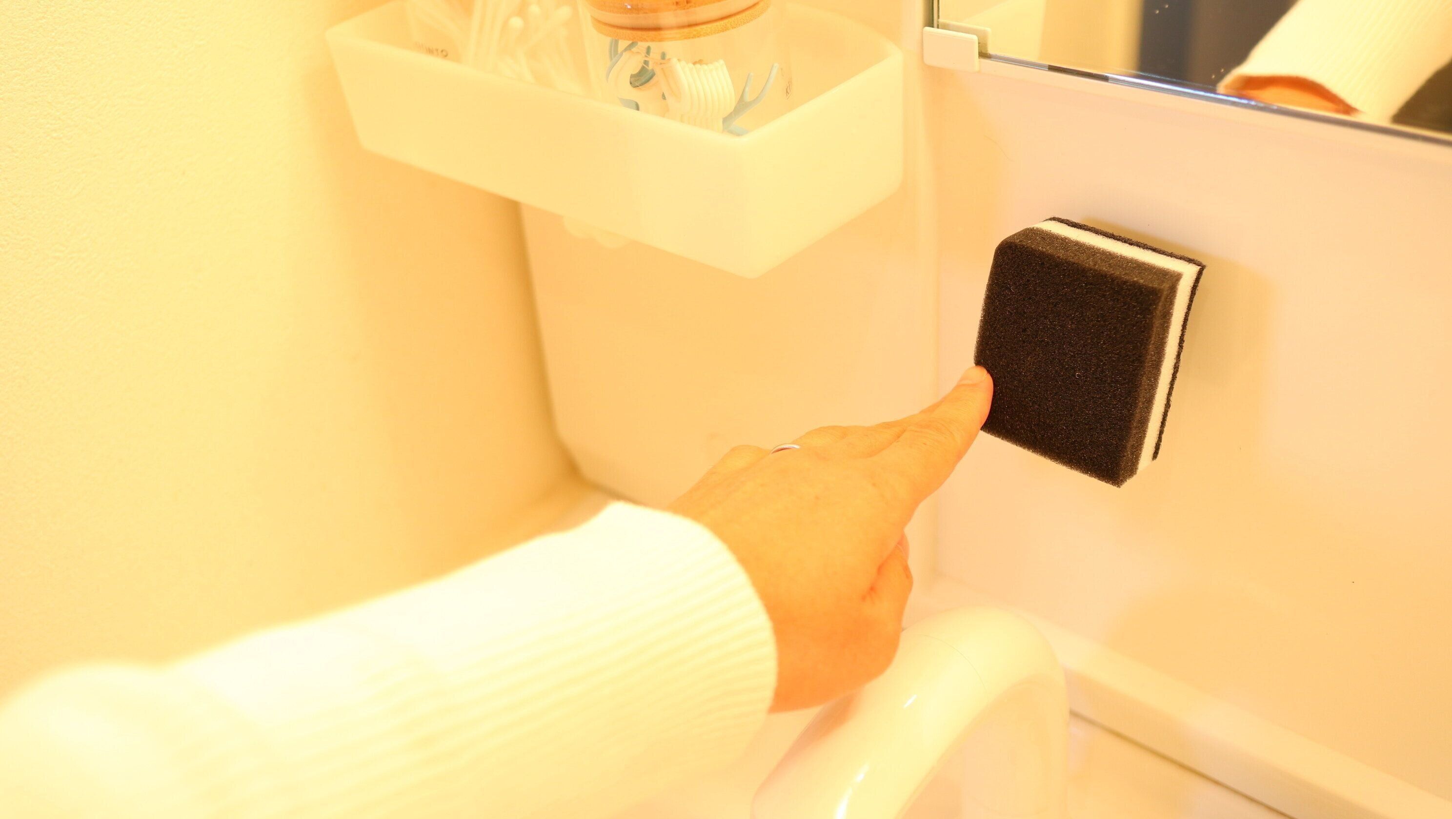 毎朝、顔を洗うついでにスポンジでさっと洗い。習慣にすることで、特別な洗剤は不要に!ハンドソープで十分キレイになります。