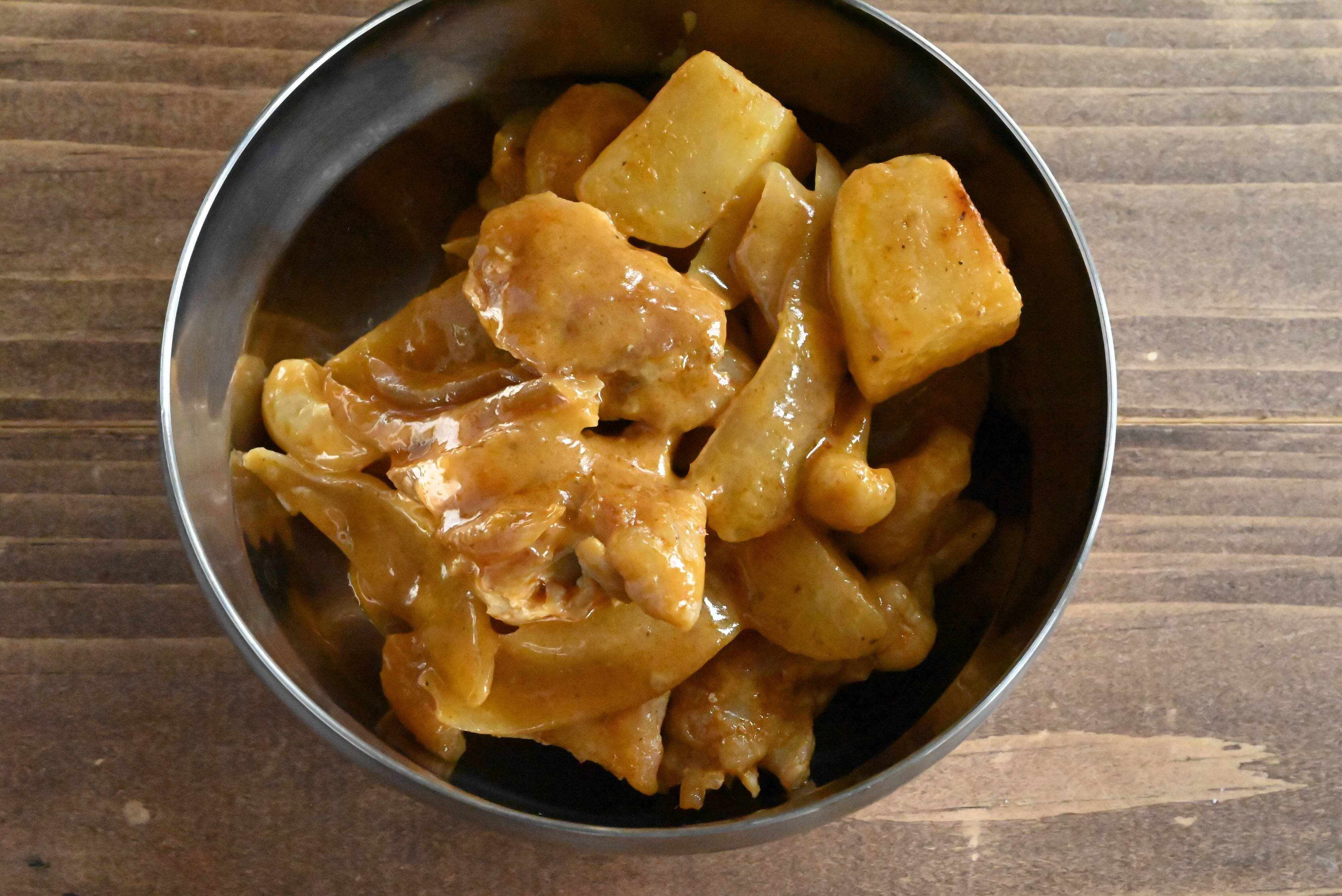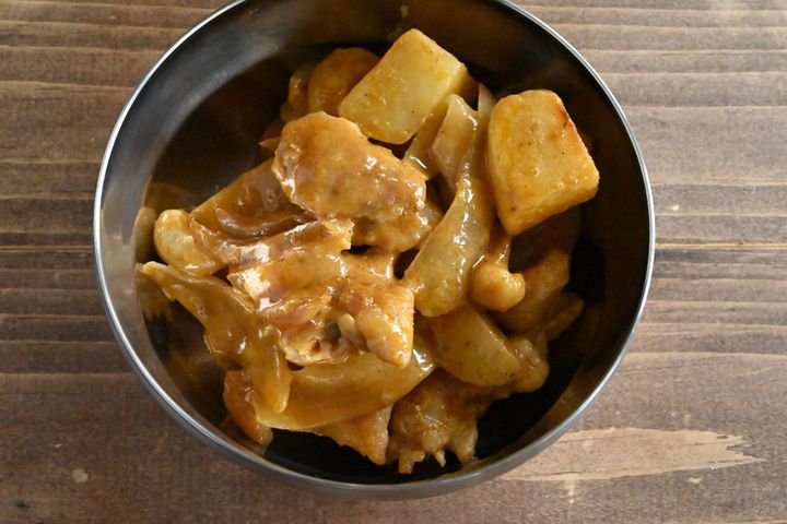 マッサマンカレーの汁気をじゃがいもがしっかり吸い込み、とってもおいしいひと皿になりますよ。