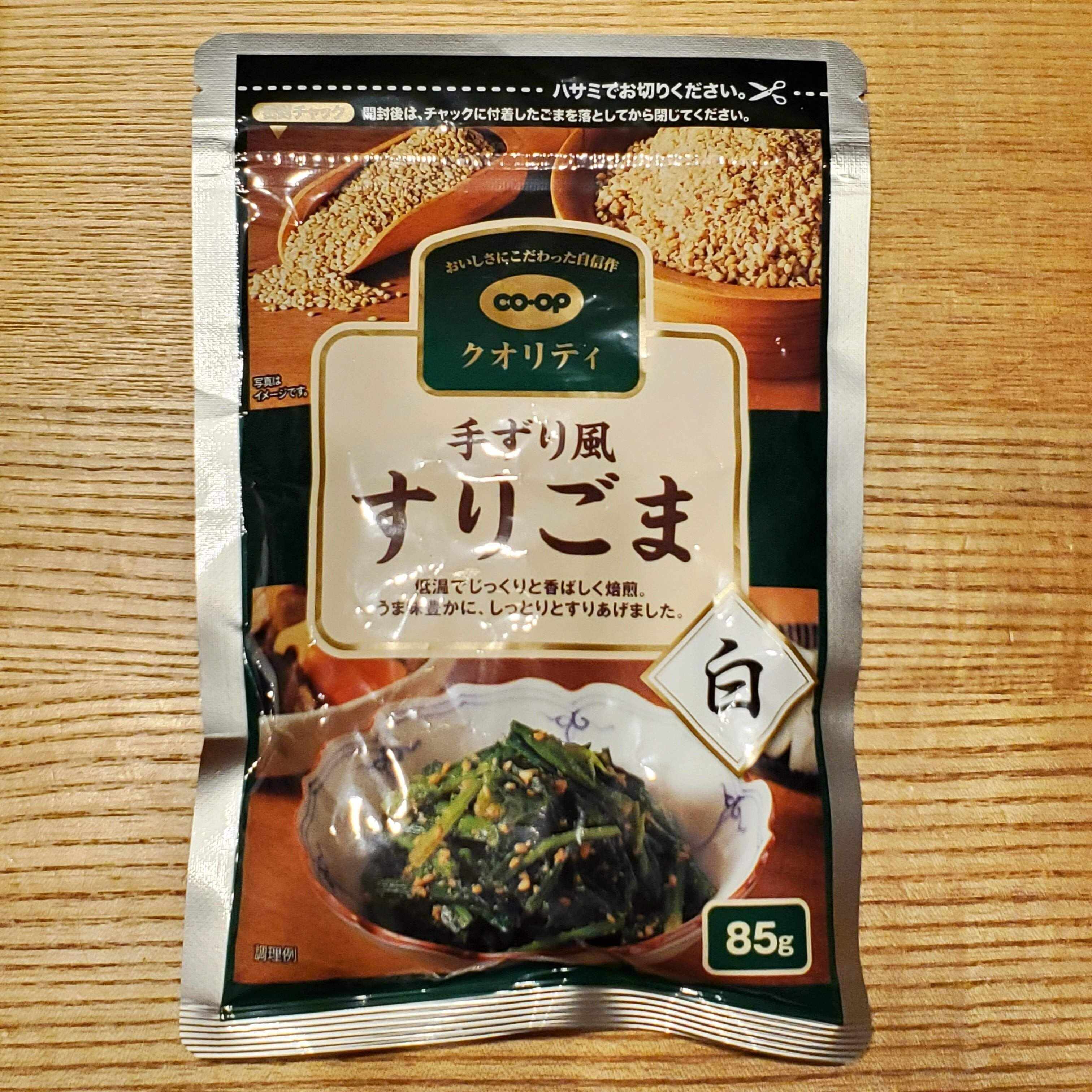 【ごま】ごまのセサミンは誰でも一度は聞いたことあるくらい有名な健康成分。でも、ごまはそのままだと吸収率が悪いので、「すりごま」がおすすめ。わが家の定番は、この生協のごま。とても風味がよくてお気に入り。