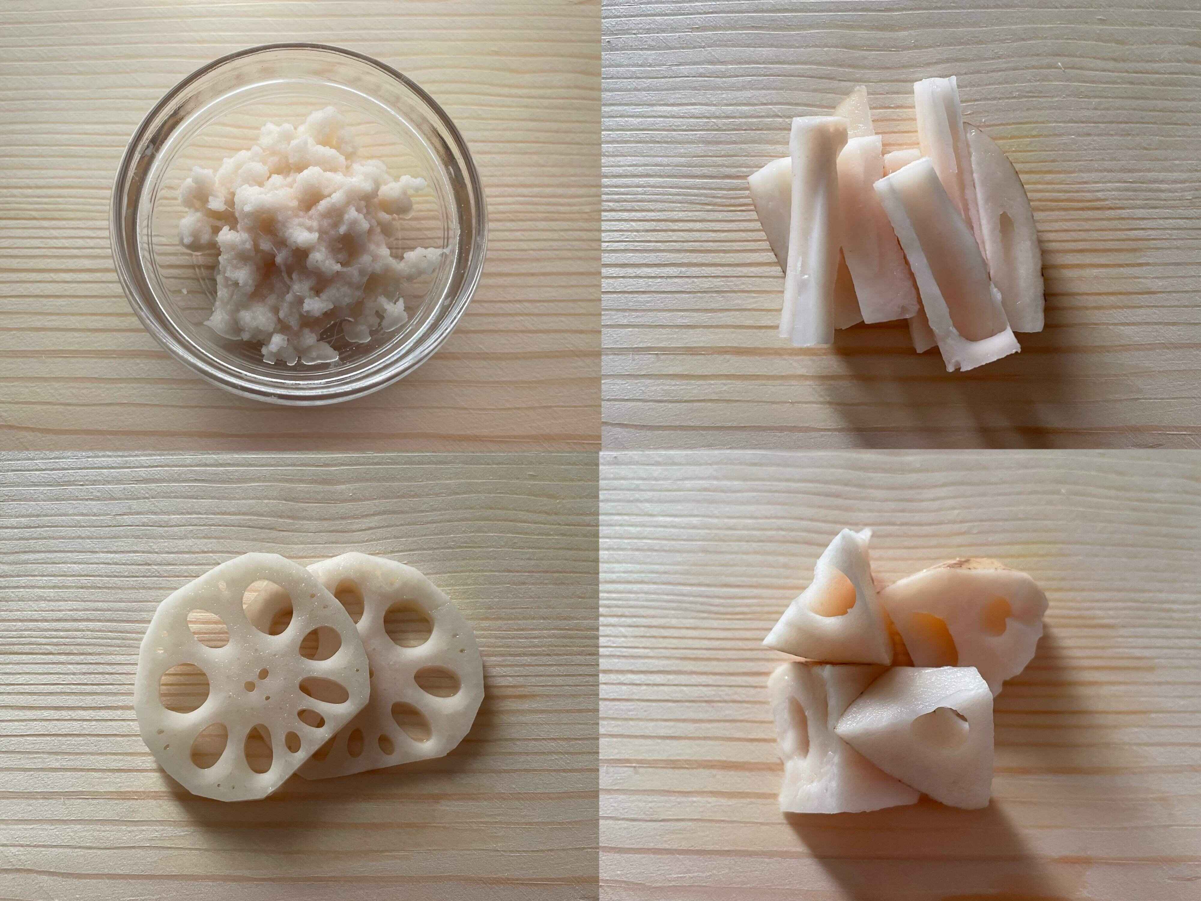 レンコンの主成分はでんぷんです。すりおろして繊維を壊すと、でんぷん質を活かすことができ、加熱した時にもちもちした食感が楽しめます。とろみづけにも活用することができますよ。