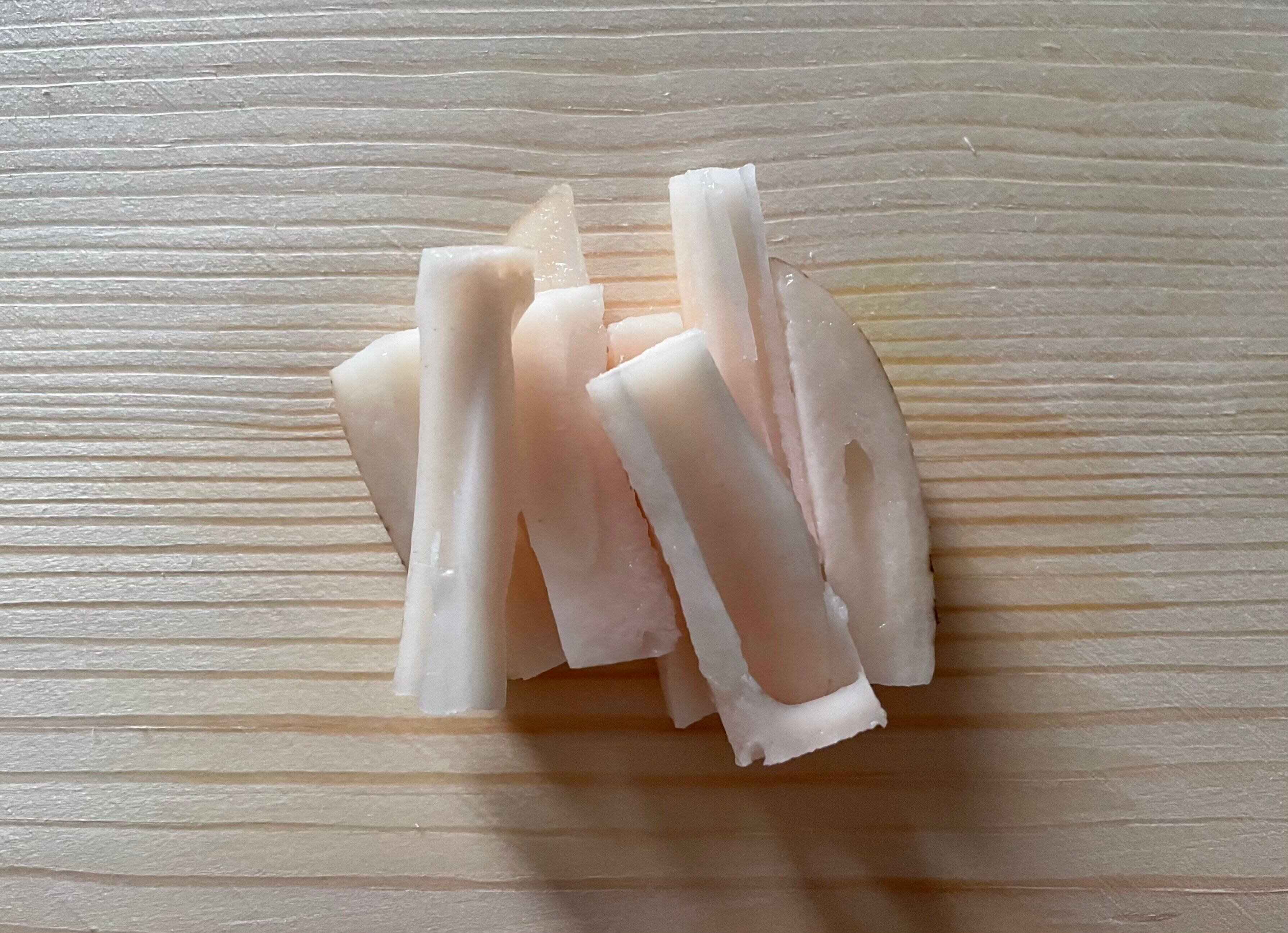 繊維に沿って切るため、しっかりとした食感を残すことができます。