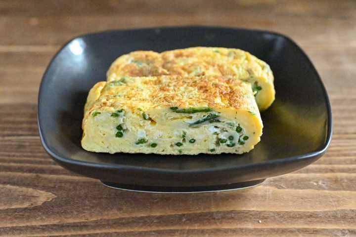 シーアスパラガスとチーズを合わせる卵焼きです。