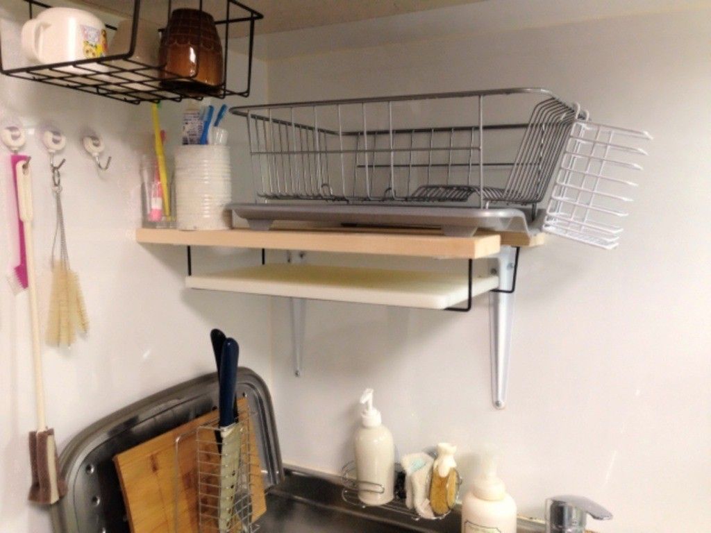 水切りカゴにまな板がピタッと収まった