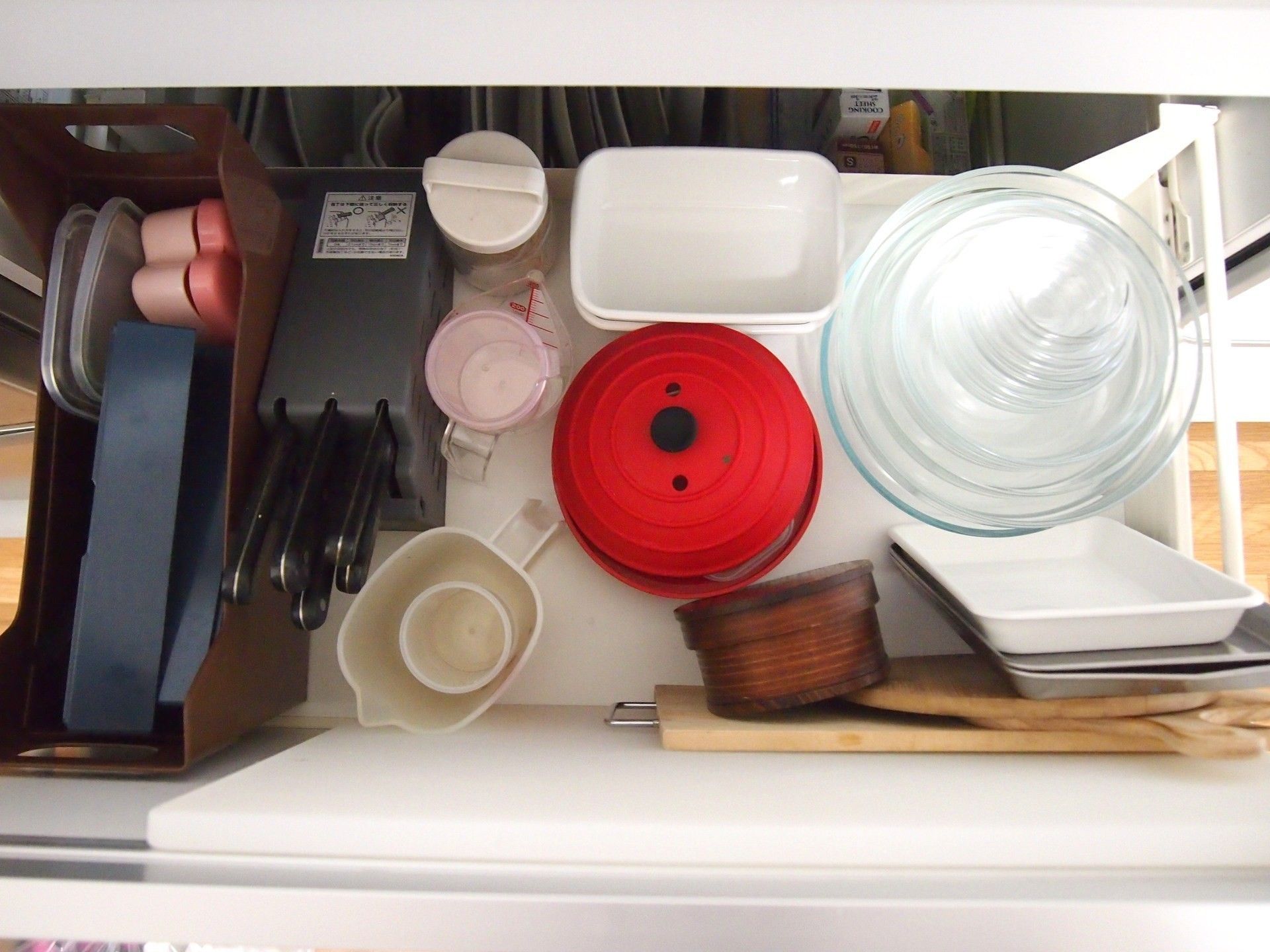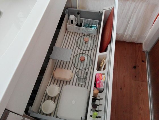 同じく引き出し収納でも、サンキュ!ブロガー臼井愛美さんは横ではなく手前正面にまな板を設置。まな板、あるいは引き出しのサイズに合わせて設置場所を調整しましょう。