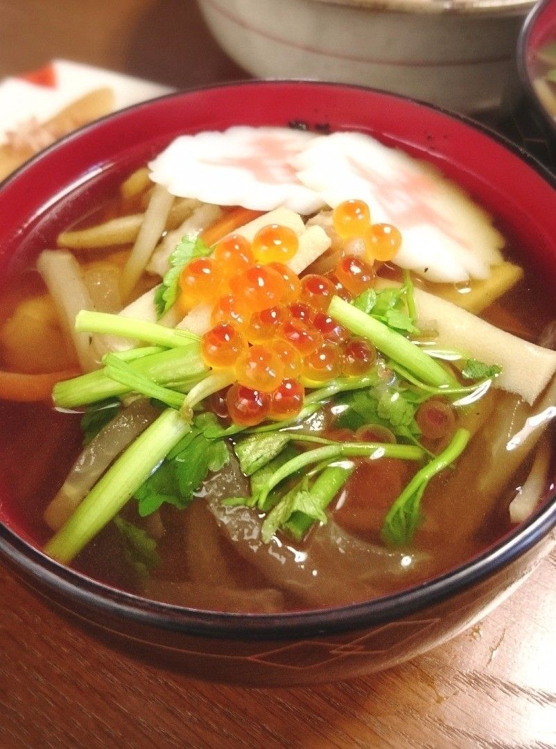 仙台のお雑煮は豪華にイクラをオン!