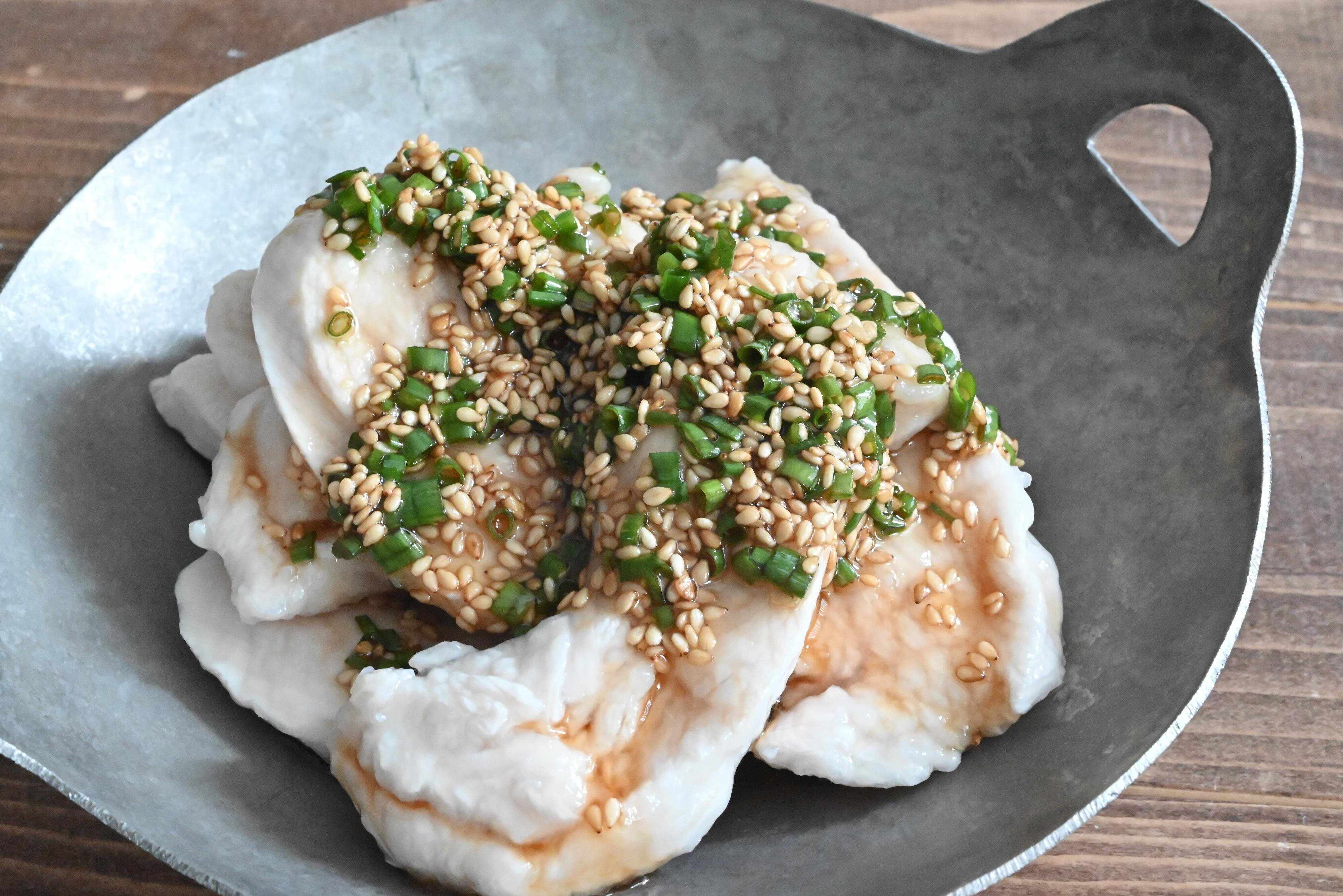 むね肉プルプル♪水晶鶏のねぎごまポン酢がけ
