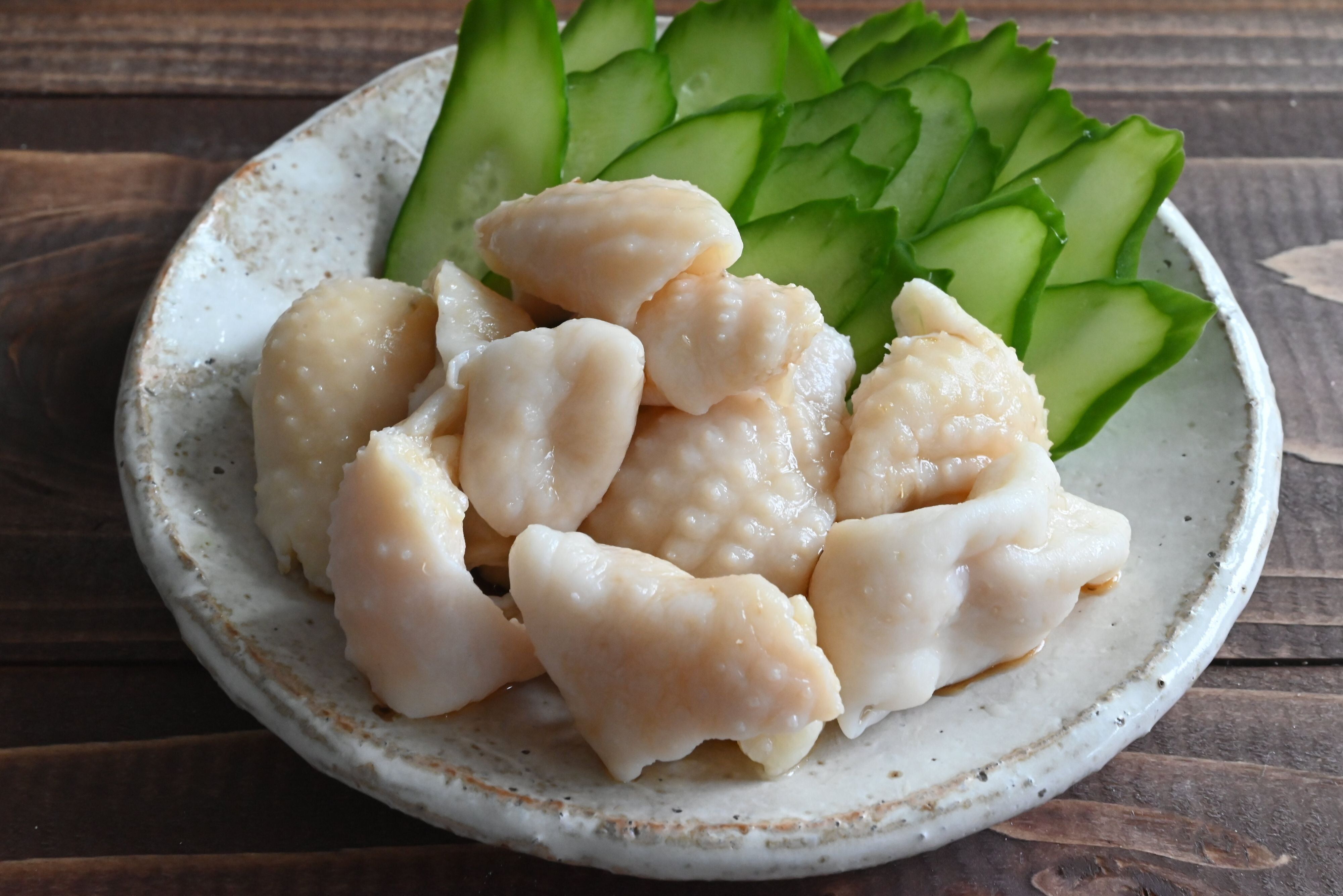 脂の多い鶏皮ですが、茹でてポン酢しょうゆをかけることでさっぱりといただけますよ。