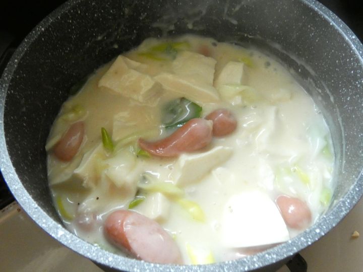 豆腐は最後に入れて温めるだけにすると崩れにくいです。ウィンナーによって塩加減の調節してください。