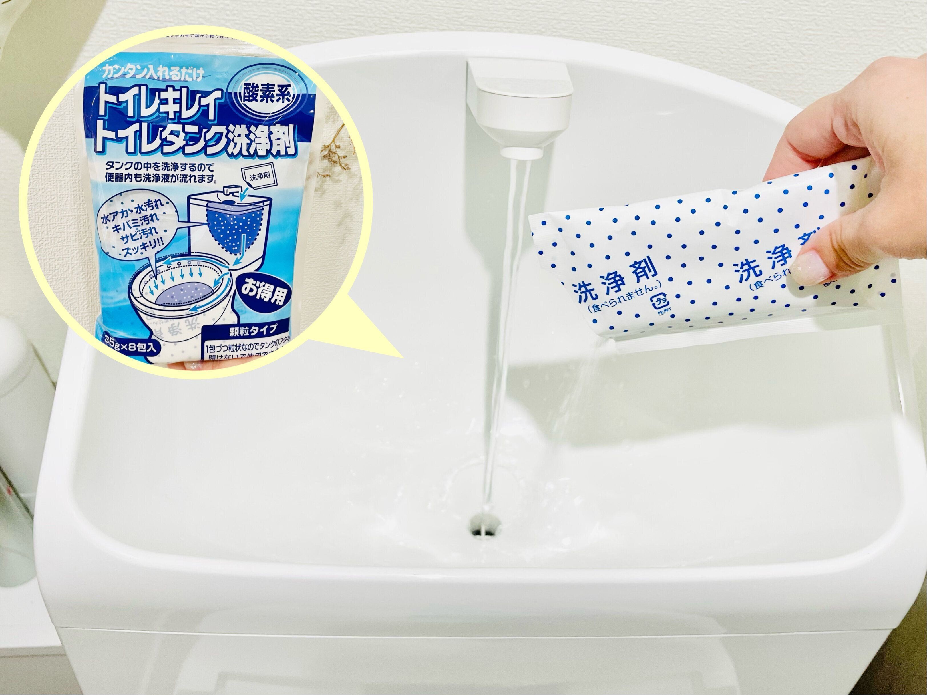 タンクの掃除には、木村石鹸工業【トイレキレイ トイレタンク洗浄剤】。