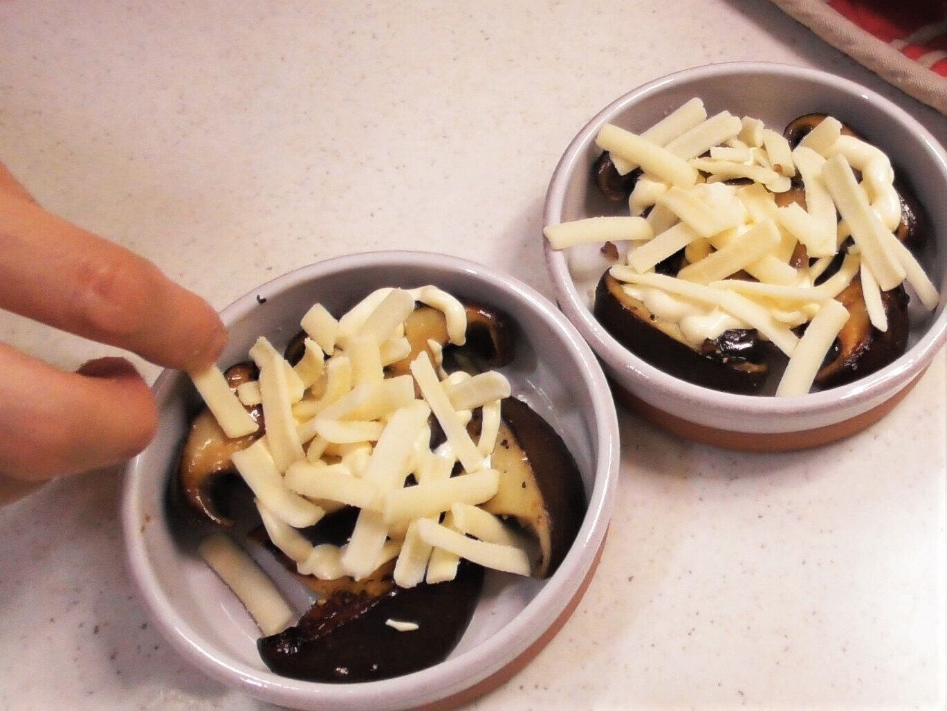 [1].耐熱皿に大黒本しめじの簡単ソテーを並べる。