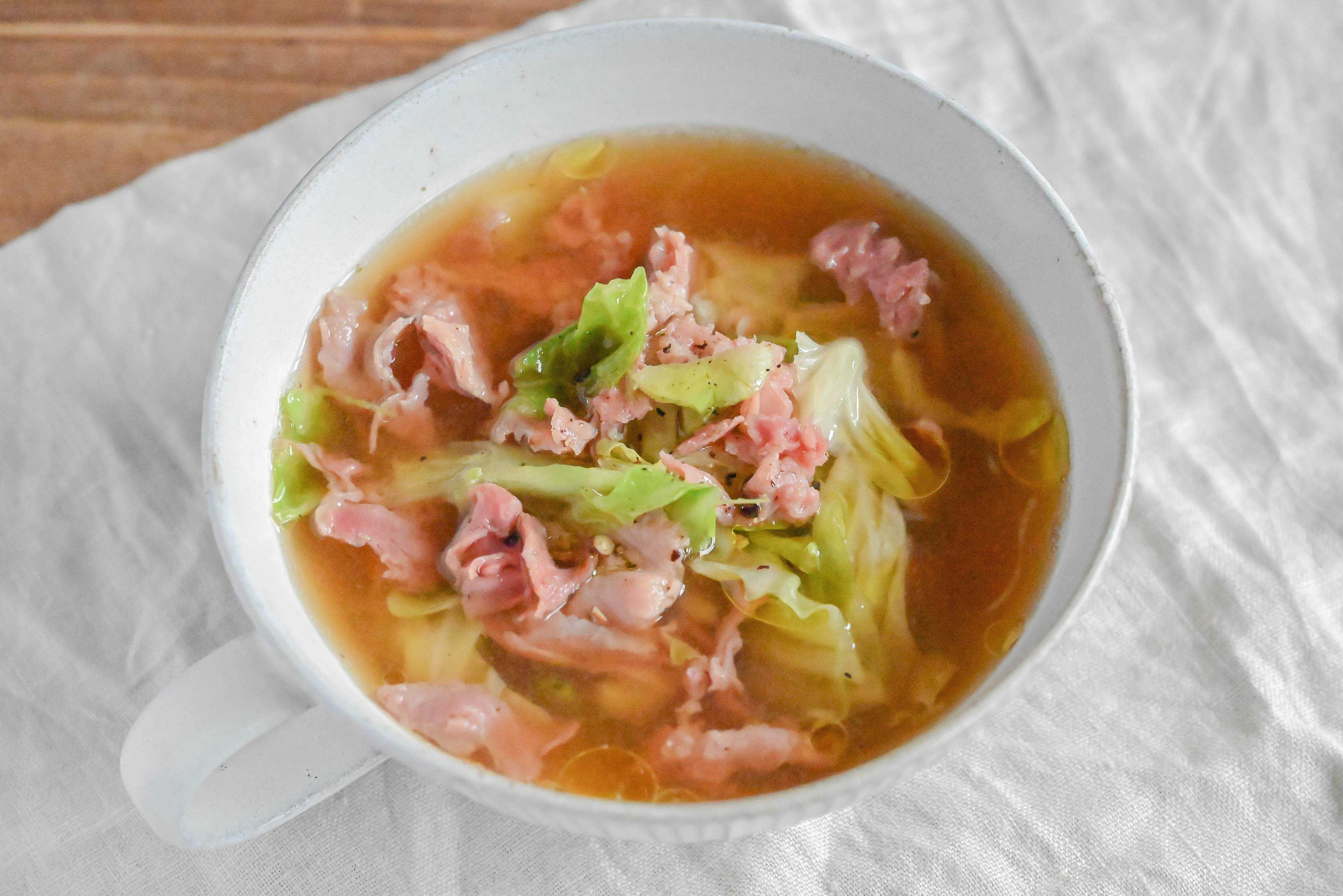 1人分から作れる!キャベツと生ハムのスープ