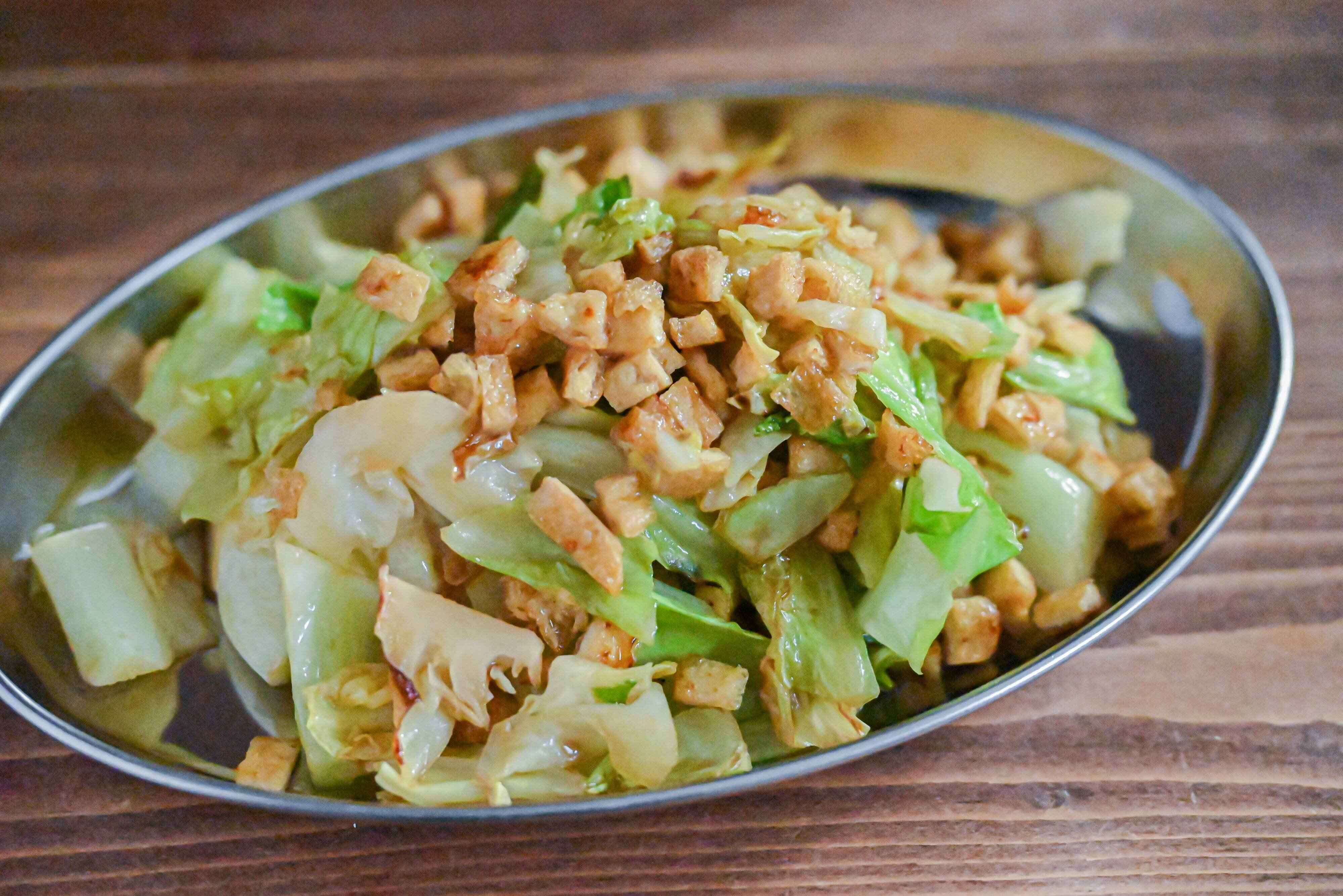 キャベツの甘味と油揚げの食感、オイスターソースが交わるおいしいひと皿になりますよ。