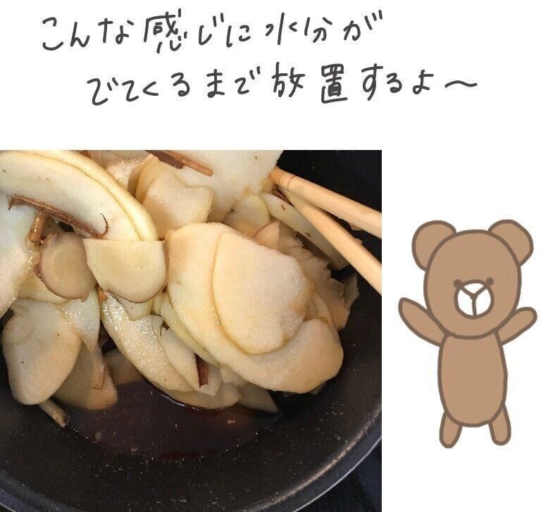 (3)水分が出たら1カップ分の水を加え火にかける