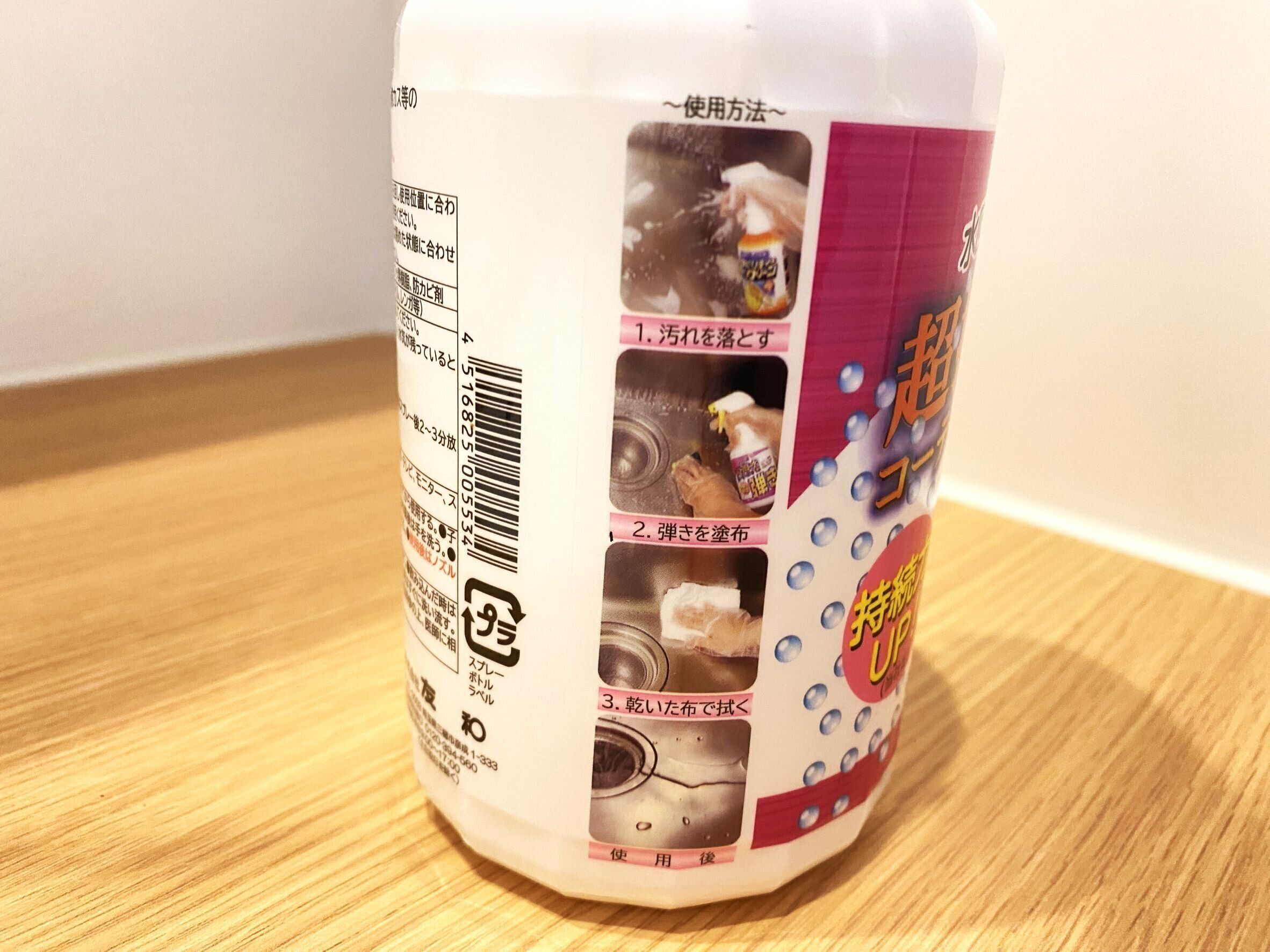ボトルに記載されている通り、まずはコーティングしたい箇所を綺麗に掃除します。この時使用する洗剤は撥水コーティング剤ではありません。