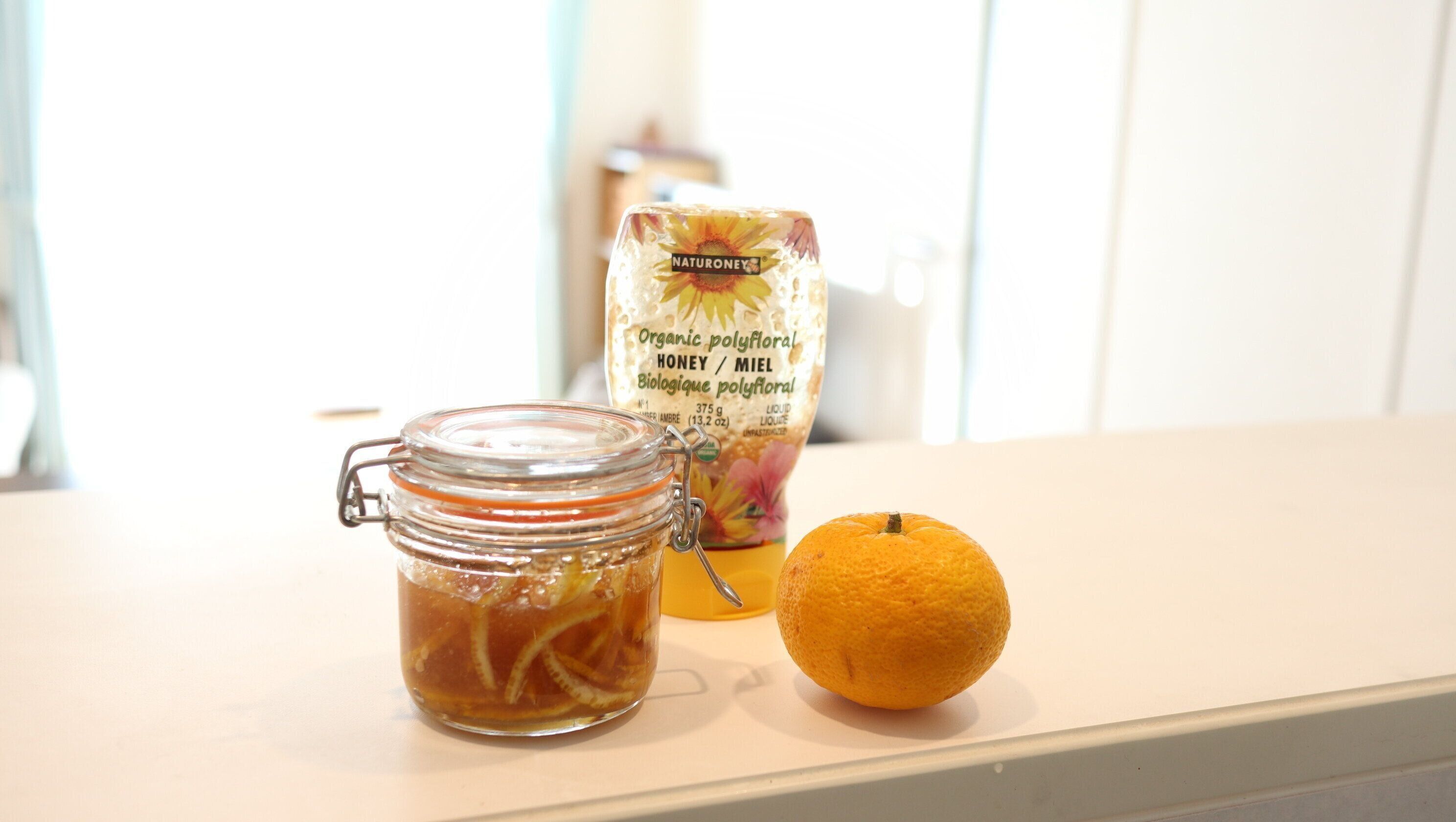 その後、柚子皮が浸るくらいのハチミツを注いだら完成!