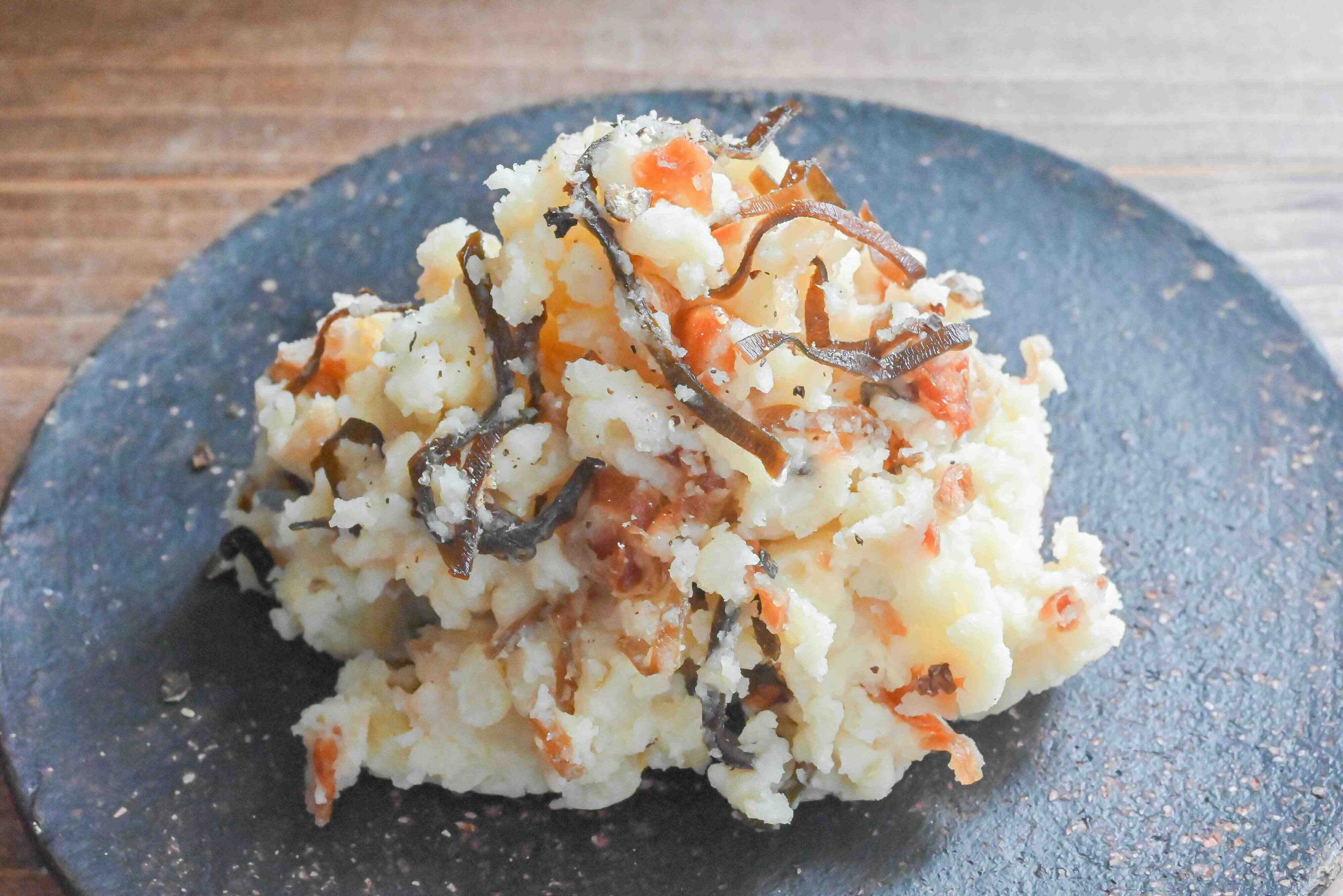 塩昆布、フライドオニオン、クリームチーズを合わせる、旨味たっぷりのマッシュポテトです。