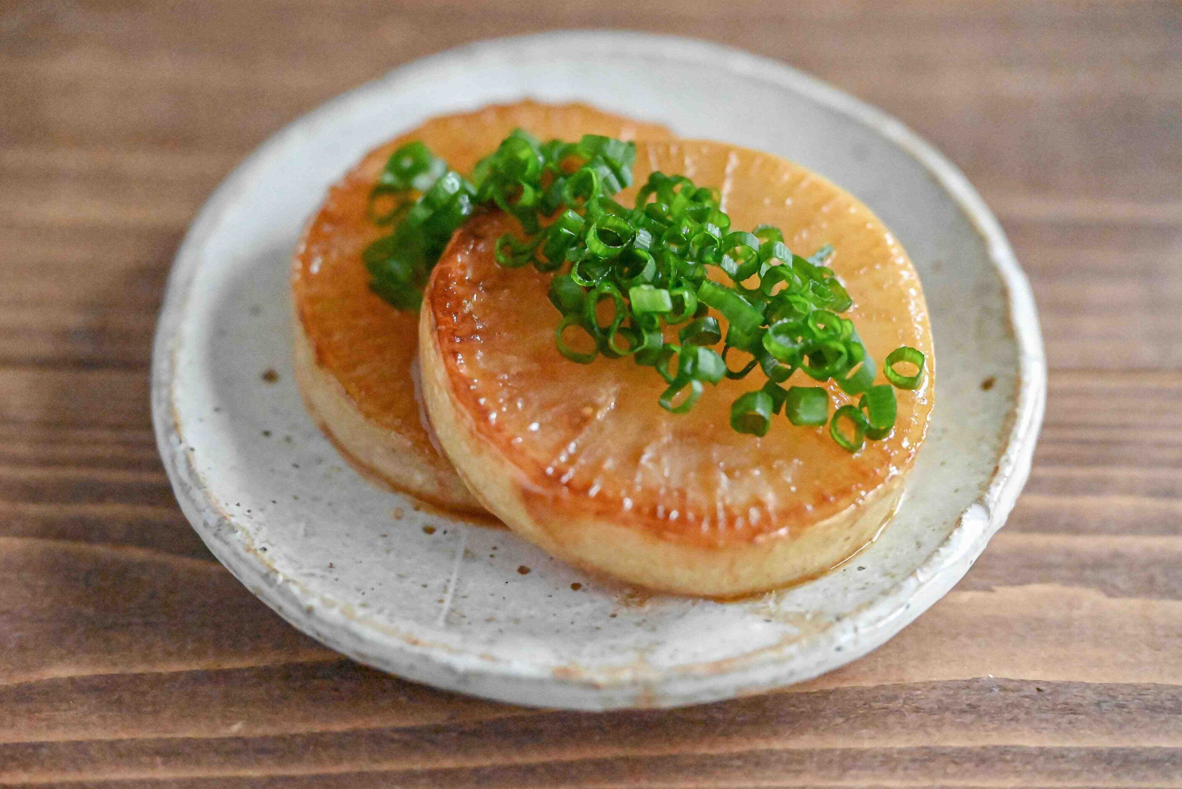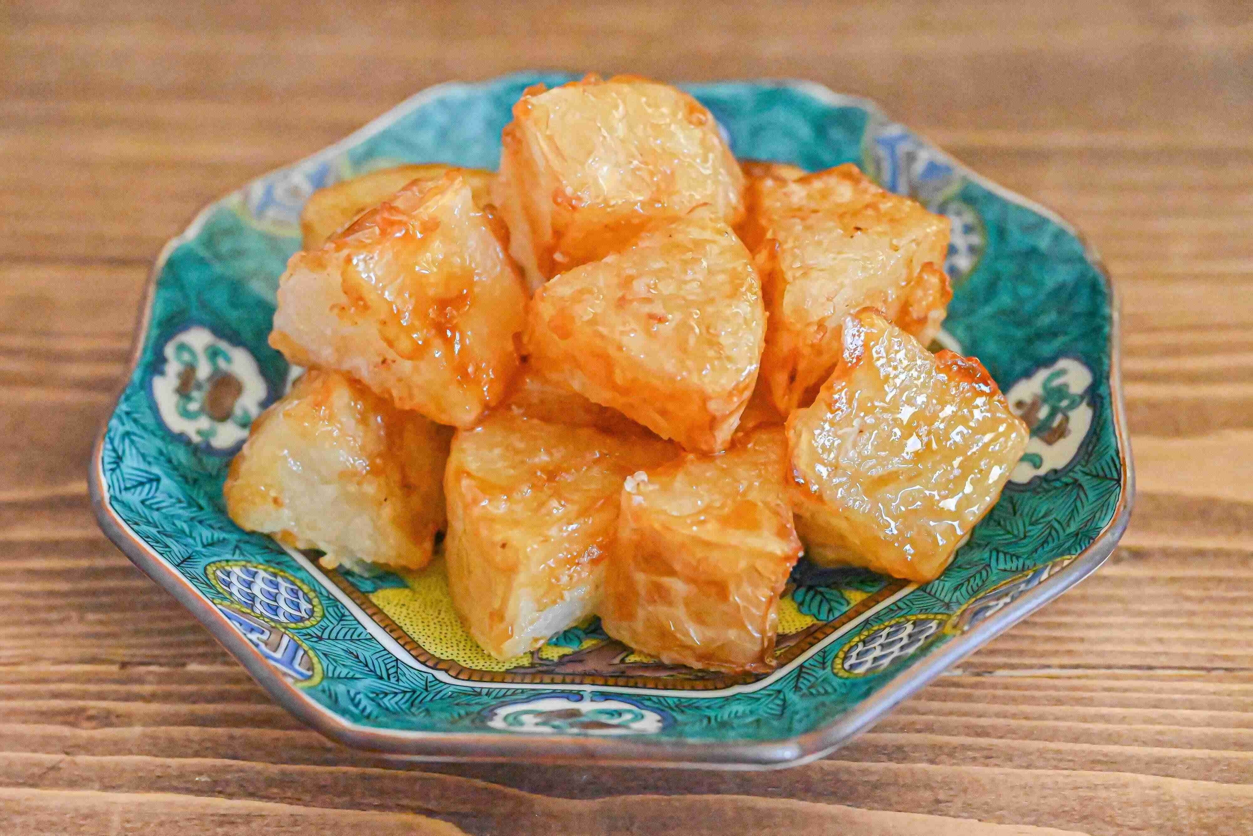揚げた大根にみりんと醤油を絡めるレシピです。