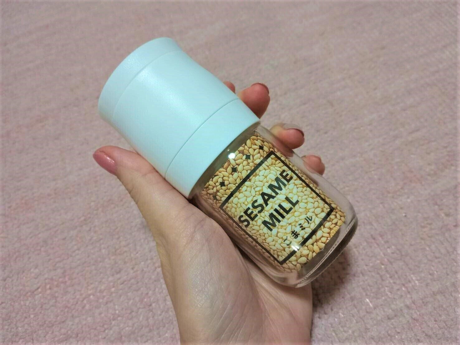 しかしわが家ではそこまですりゴマの消費量が多くない…、そこで今回買ってみたのが、ダイソーの「ごまミル」です。