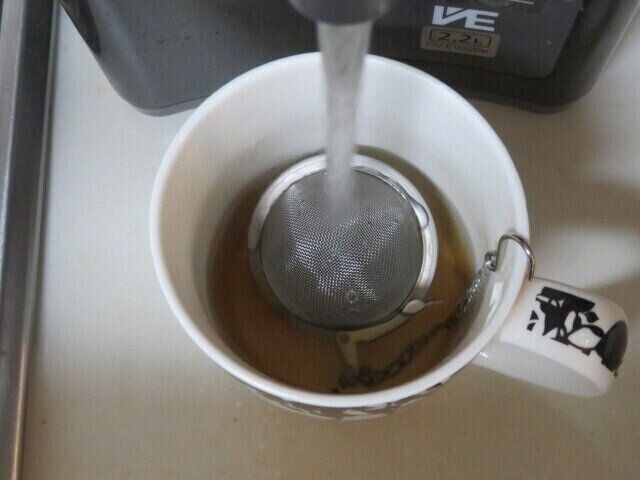 あとはフックをふちにかけた状態でマグカップに入れ、熱湯を注ぐだけでお茶がいれられます。